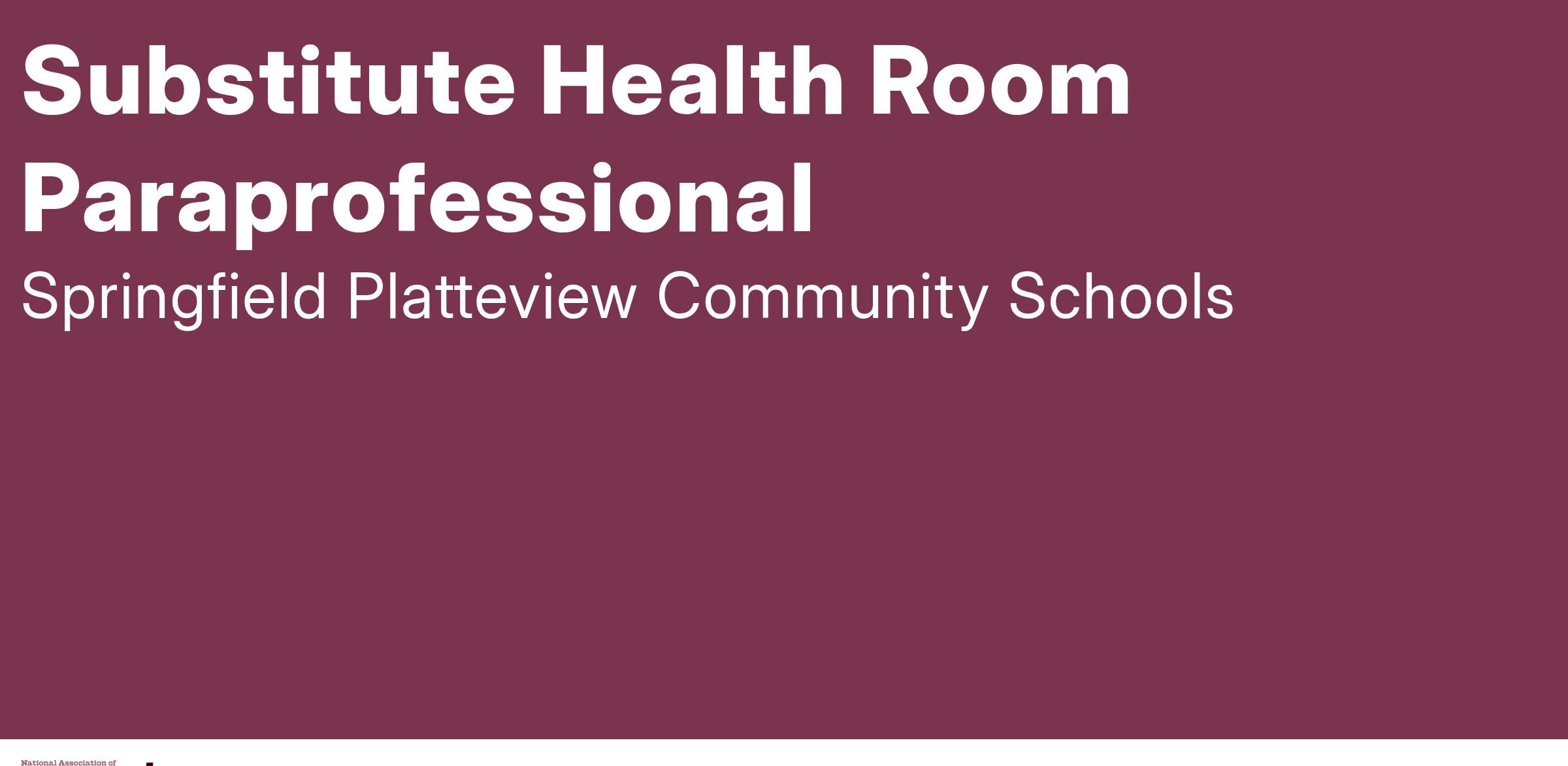 - Communicates effectively with parents and staff on matters of illness, accidents, and policies of Springfield Platteview Community Schools.