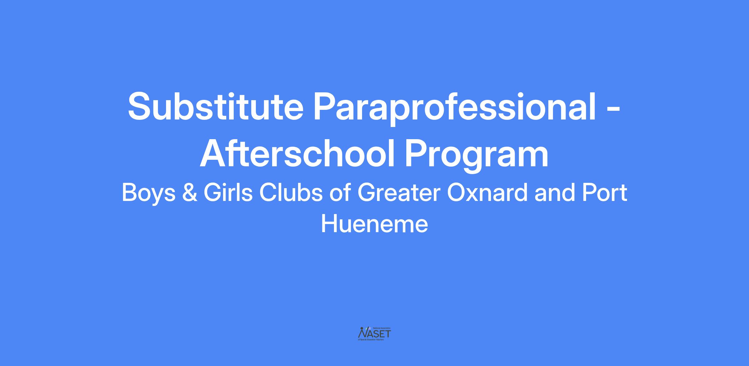 DescriptionSubstitute Paraprofessional will, under general supervision, perform a variety of instructional and personal services for students with physical, mental, and/or developmental delays. May provide services to students with specialized needs and assist students who require personal and health care. Monitors and records student behavior and performance. They will assist the instructor with their classroom responsibilities as instructed. This is an on-call position, Monday thru Friday.