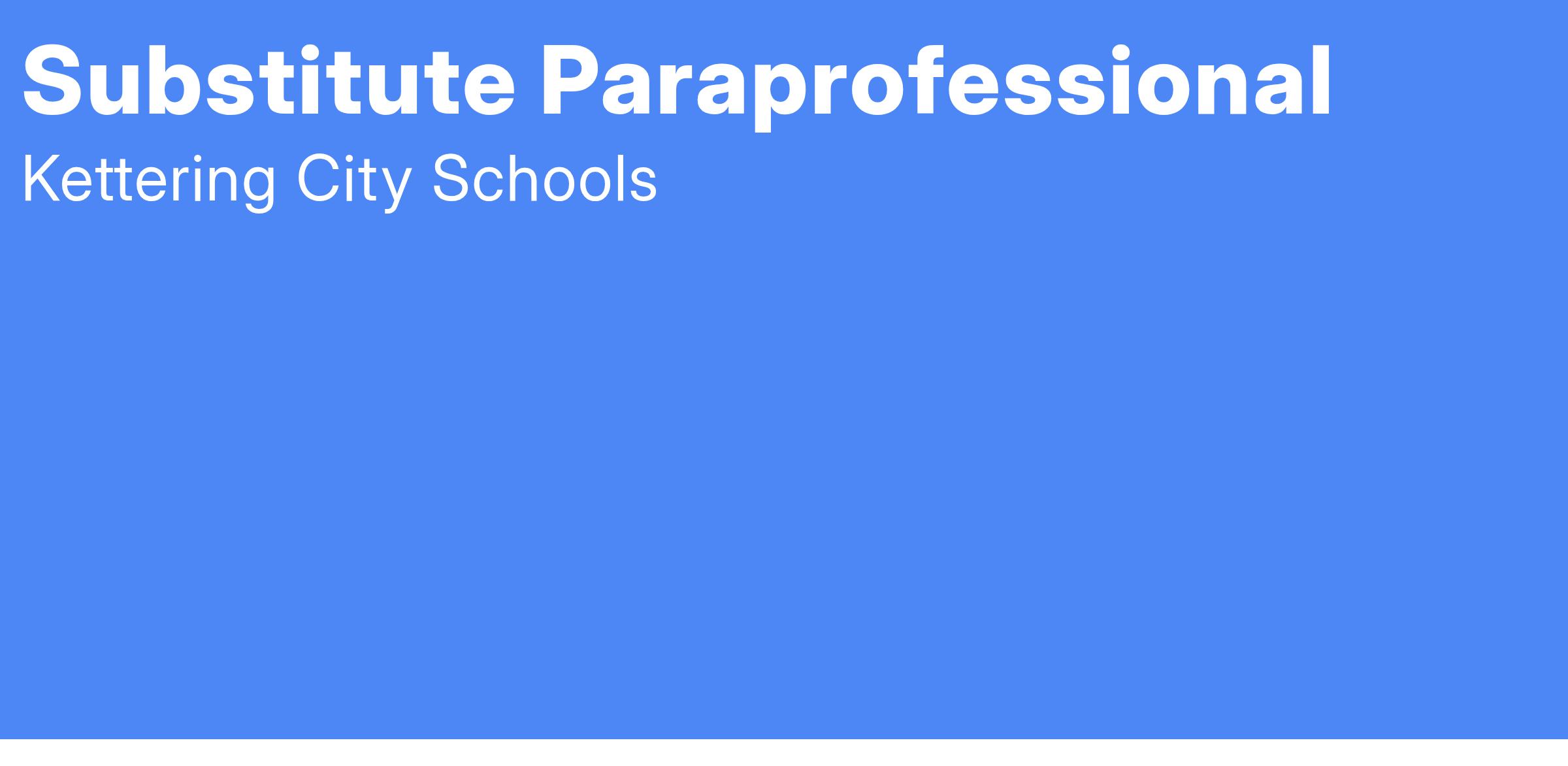 GENERAL INFORMATION: Kettering City Schools is accepting applications for Substitute Paraprofessionals to work on an as needed basis. Applicants must have a valid Ohio Educational Aide Permit.