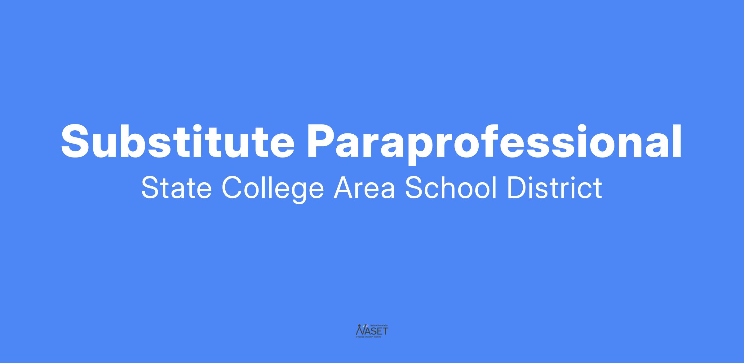 The State College Area School District is seeking enthusiastic and resourceful substitute paraprofessionals for the 2025-26 school year to support our classroom teachers and students. The district is seeking candidates who demonstrate a commitment to professional growth and development and possess diverse professional experiences. Substitute paraprofessionals will reinforce classwork, guide activities under the supervision of a teacher, and prepare teaching materials. An outstanding substitute paraprofessional will be someone whose patient and student-centered approach enables all students to benefit from learning experiences. Substitute Paraprofessional job duties may differ with each placement. Organizational and collaborative skills are critical to success in these positions.