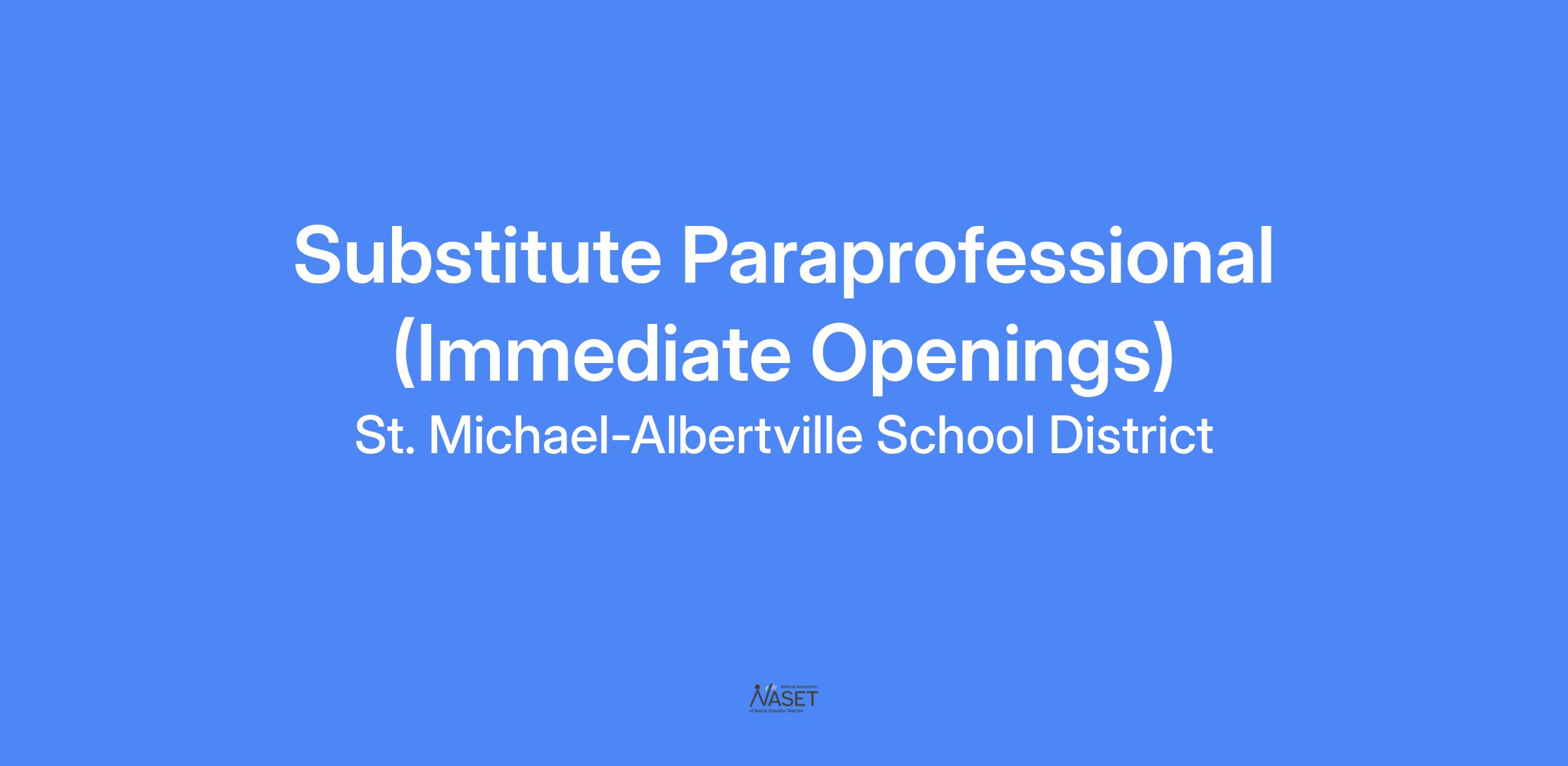 St. Michael-Albertville School District is committed to providing equal opportunity to all employees and applicants for employment in accordance with all applicable laws. STMA Schools does not discriminate against any employee or applicant on the basis of race, color, creed, religion, national origin, sex, marital status, status with regard to public assistance, disability, sexual orientation, age, veteran status, or status with regard to public assistance. If any employee or applicant needs assistance with any aspect of the application or benefits process, please contact us and alternative formats will be made available upon request.