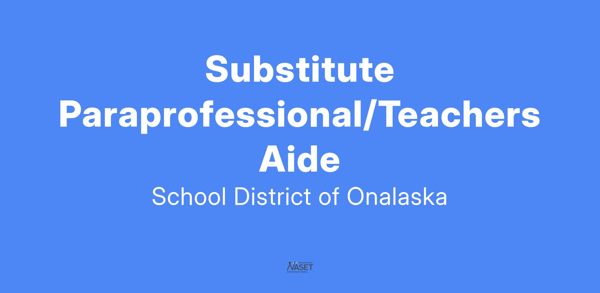 The School District of Onalaska is seeking substitute paraprofessionals (teachers aide). Part Time, Sub Paraprofessionals are non-certified instructional staff who assist in the classroom under the guidance of a teacher. Hourly wage is $15.66/hour. Hours vary based on school.
