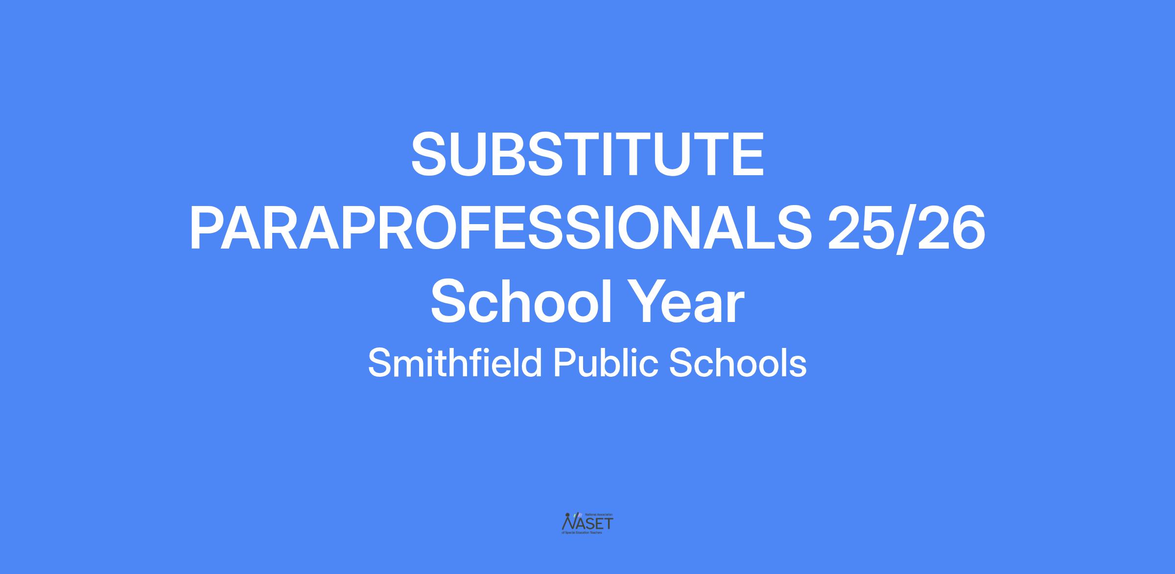 Substitute paraprofessionals (teacher assistants) positions available with the Smithfield Public Schools for the 2025-2026 School Year.