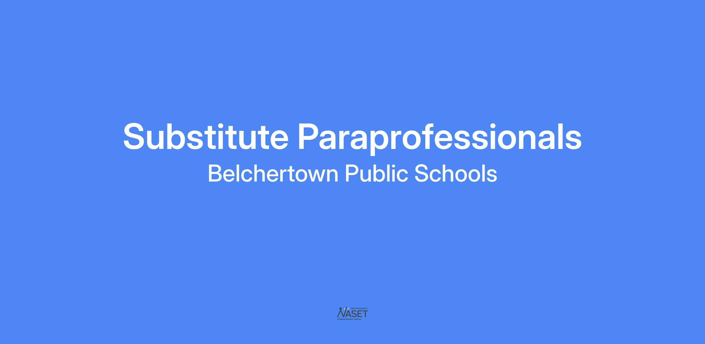 Substitute instructional or intensive needs paraprofessionals will provide assistance to special needs students in their classroom and throughout the day.