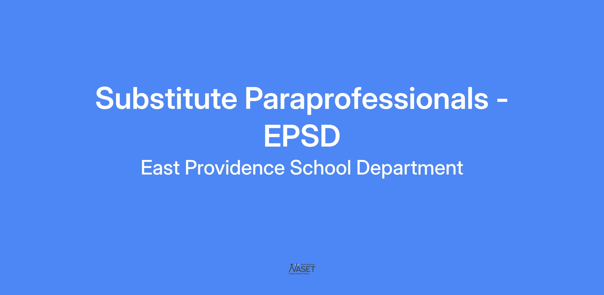The East Providence School District is in need of day-to-day Substitute Paraprofessionals. Paraprofessional is a member who helps teachers and students in the classroom. They provide extra support, especially for students with special needs, by assisting with lessons, behavior management, and other tasks.