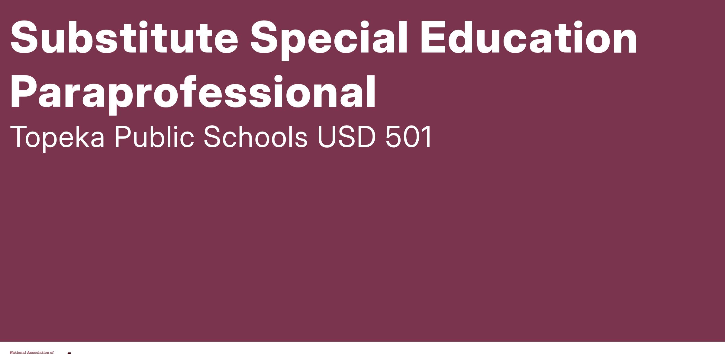 Applicant needs to be honest, a self-starter, and a hard worker. Paraprofessional Substitutes may work with gifted, moderately and/or severely disabled, learning disabled, behavioral disabled, physically impaired, autistic, hearing impaired, visually impaired, speech impaired students.