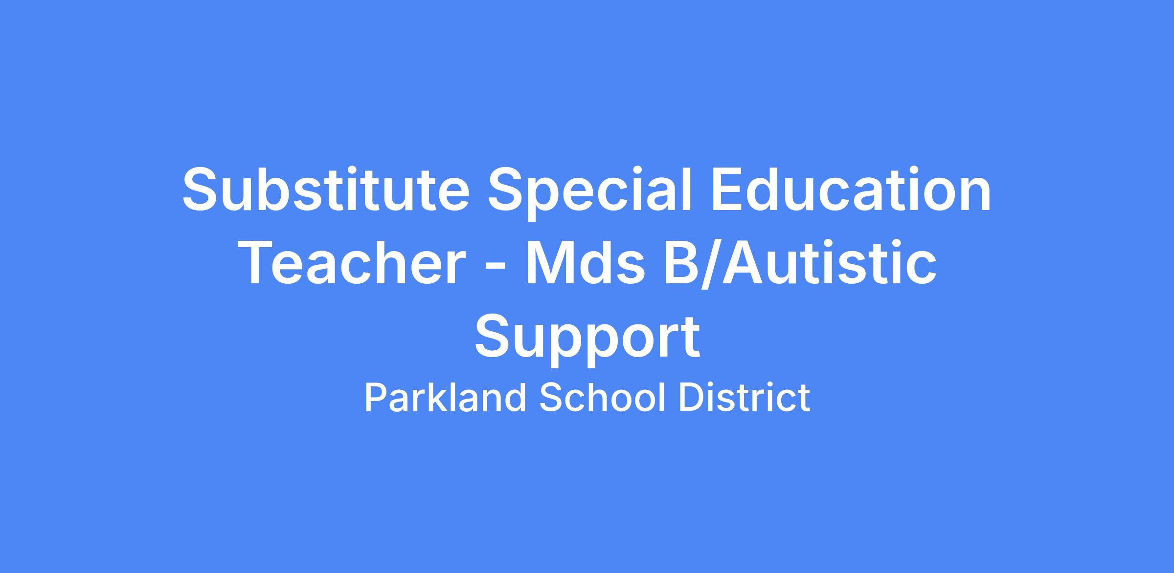 Parkland School District is seeking a dynamic and caring substitute to fill a vacancy for a Special Education Teacher in a Middle School MDS B/Autistic Support Classroom. This need is anticipated beginning in May, 2026 through the end of this school year.