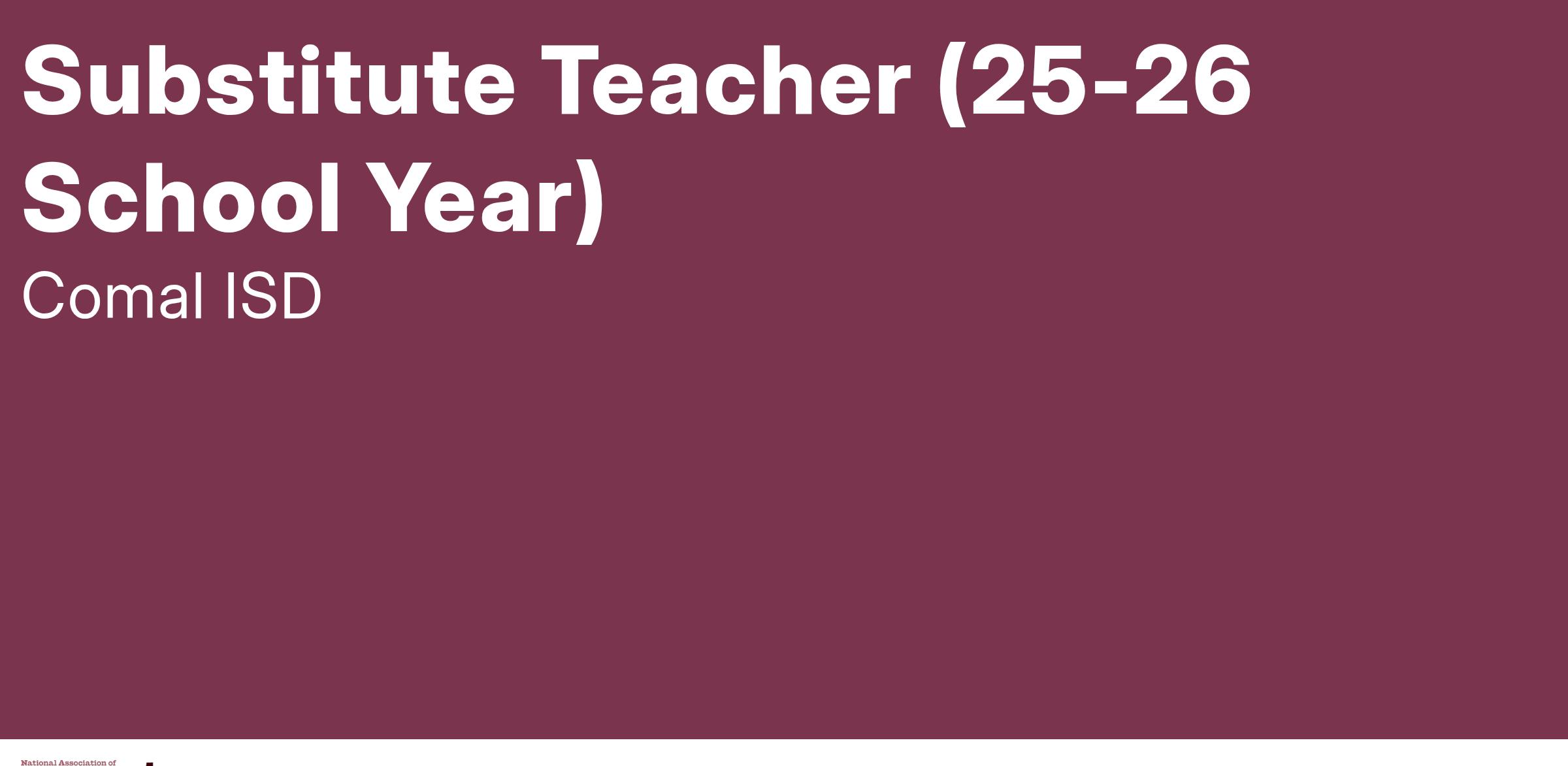 Please Note: Please contact Heather Tiller, Substitute Specialist - heather.tiller@comalisd.org, with any questions you may have. Daily rate for substitute teacher is $110.