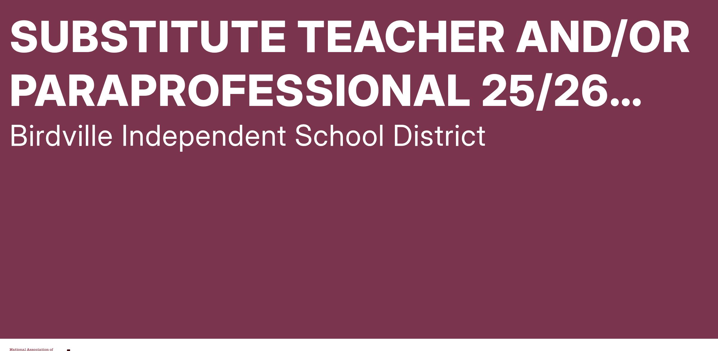 JOB TITLE: SUBSTITUTE TEACHER AND/OR PARAPROFESSIONAL