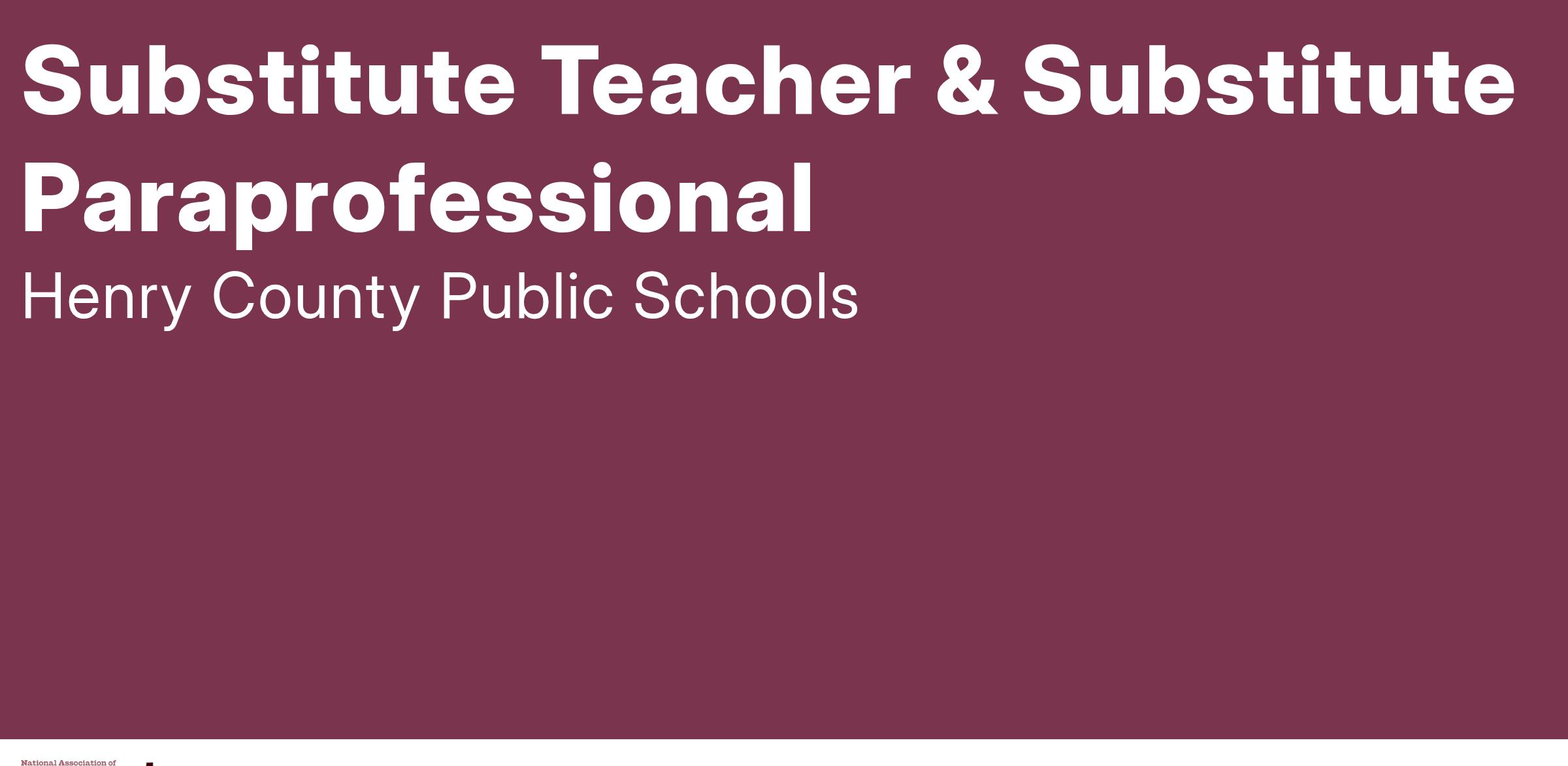 JOB TITLE: Substitute Teacher & Substitute Paraprofessional