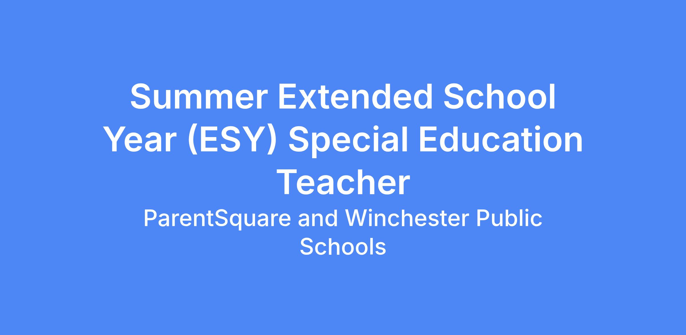 Winchester Public Schools is hiring Special Education Teachers for the Extended School Year (ESY) Summer Program.