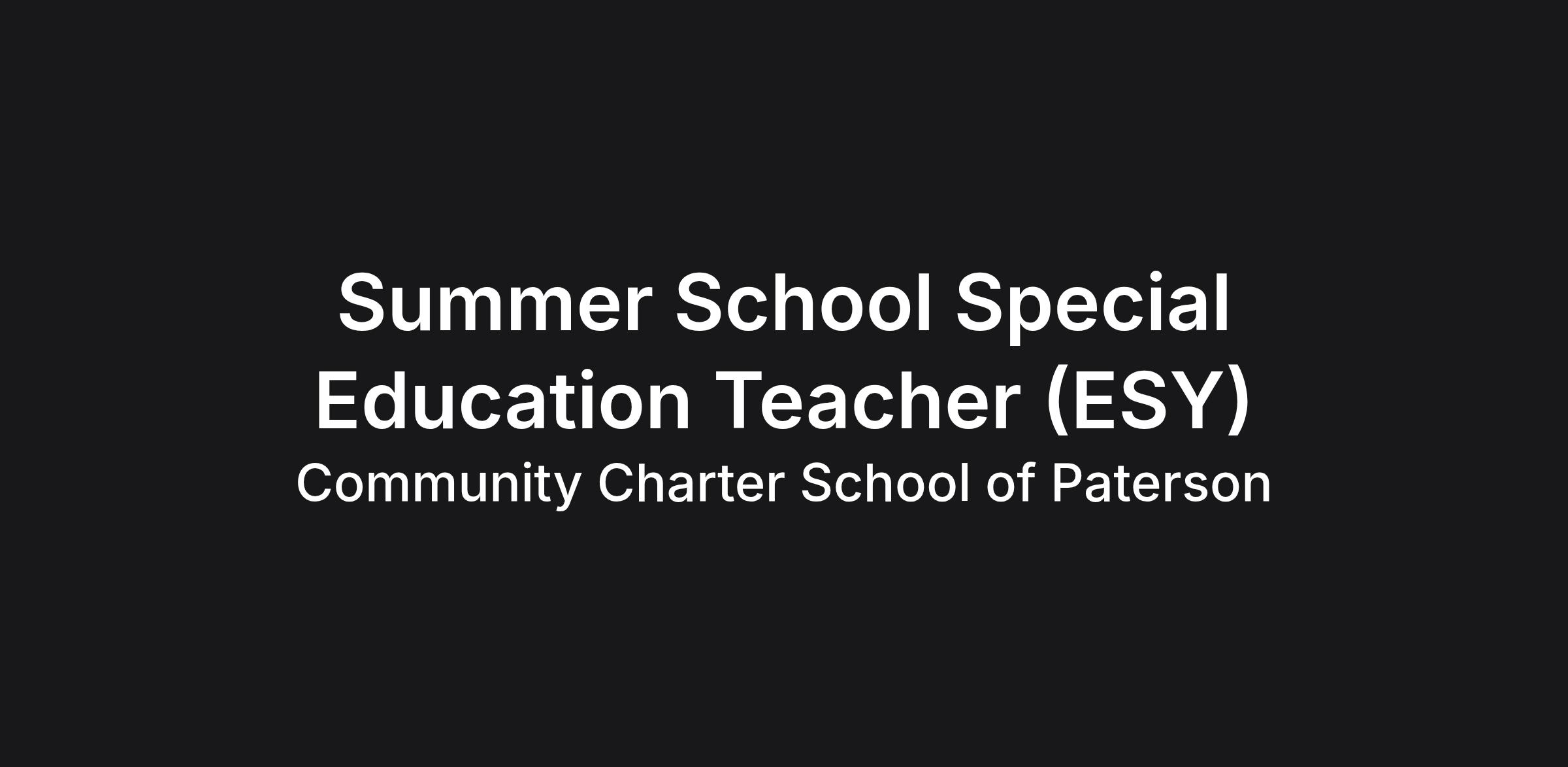 The Community Charter School of Paterson is seeking Special Education Teachers to join the 2026 Summer Program.