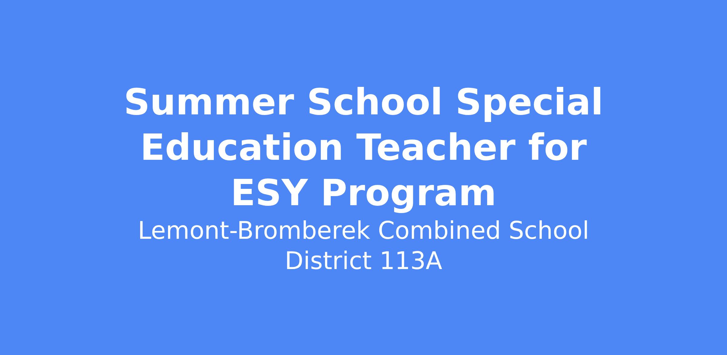 2026 Summer School Special Education Teacher for Federaly Mandated Extended School Year (ESY) Program