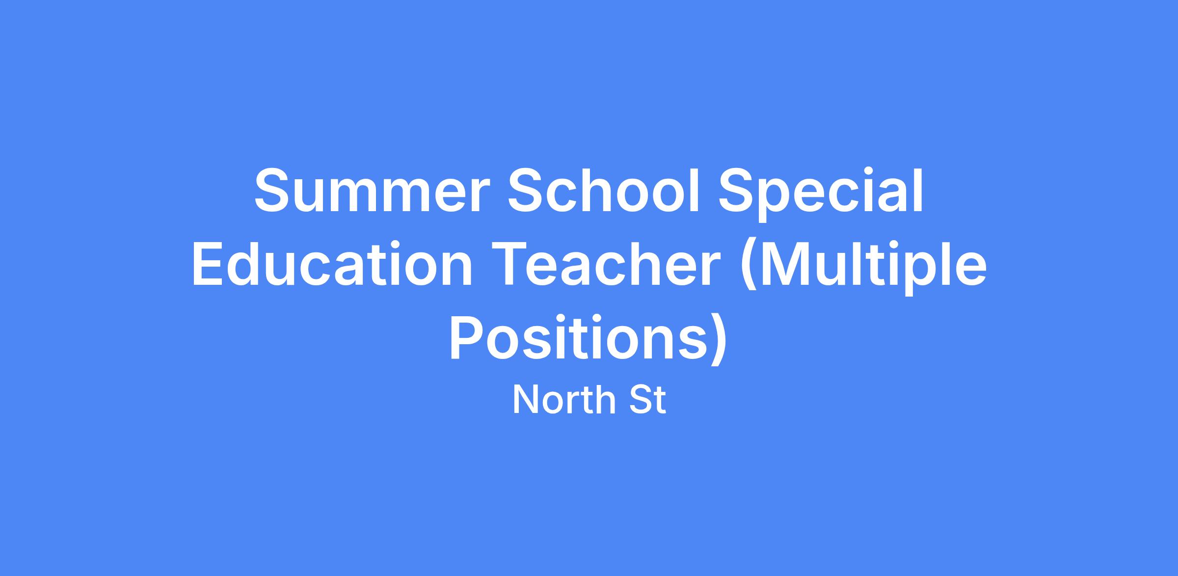Position: Summer School Special Education Teacher / Multiple Positions