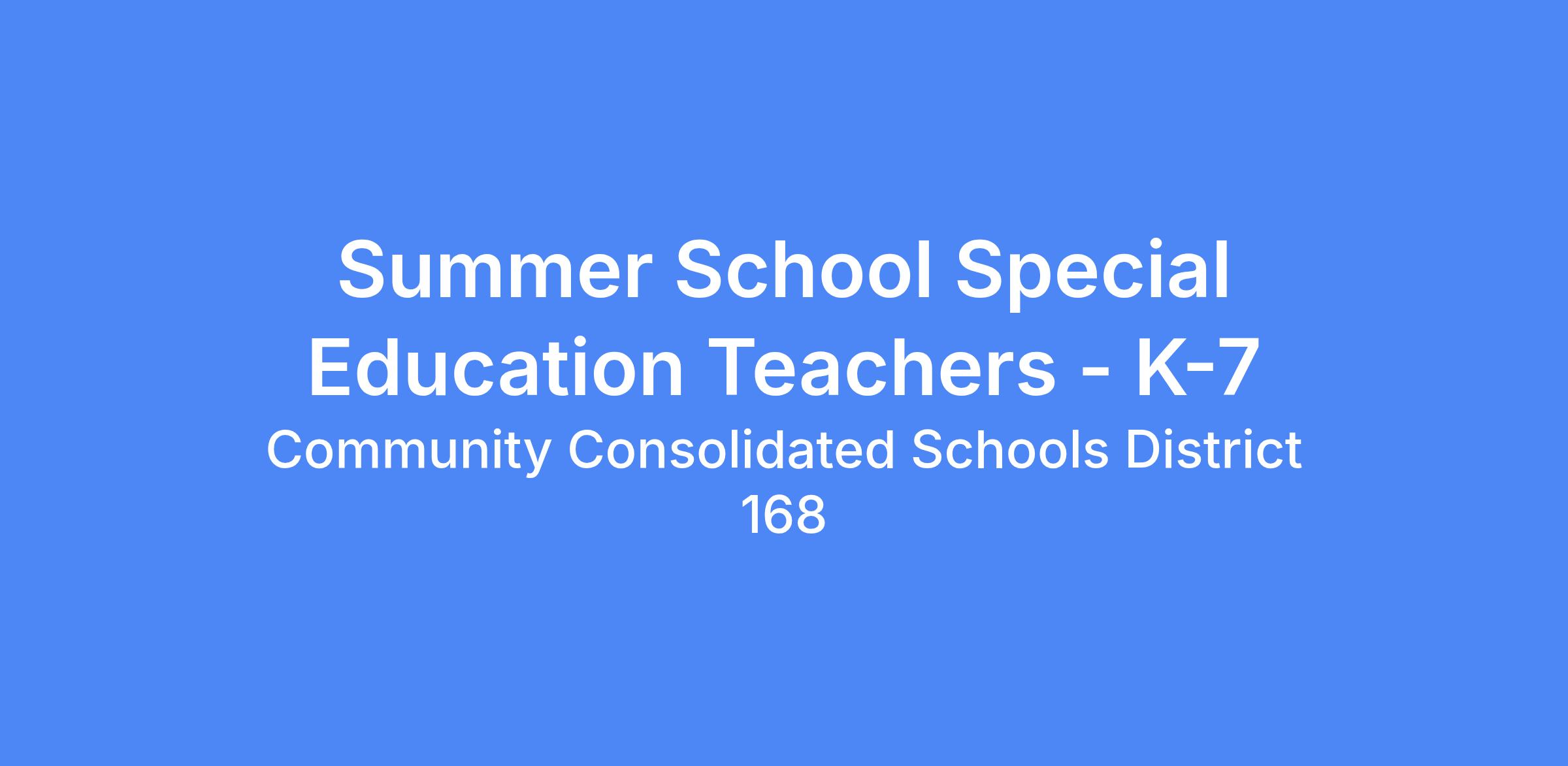 APPLICATION: Apply online: d168.org, under Employment, Job Vacancy "Summer School Special Education Teachers"