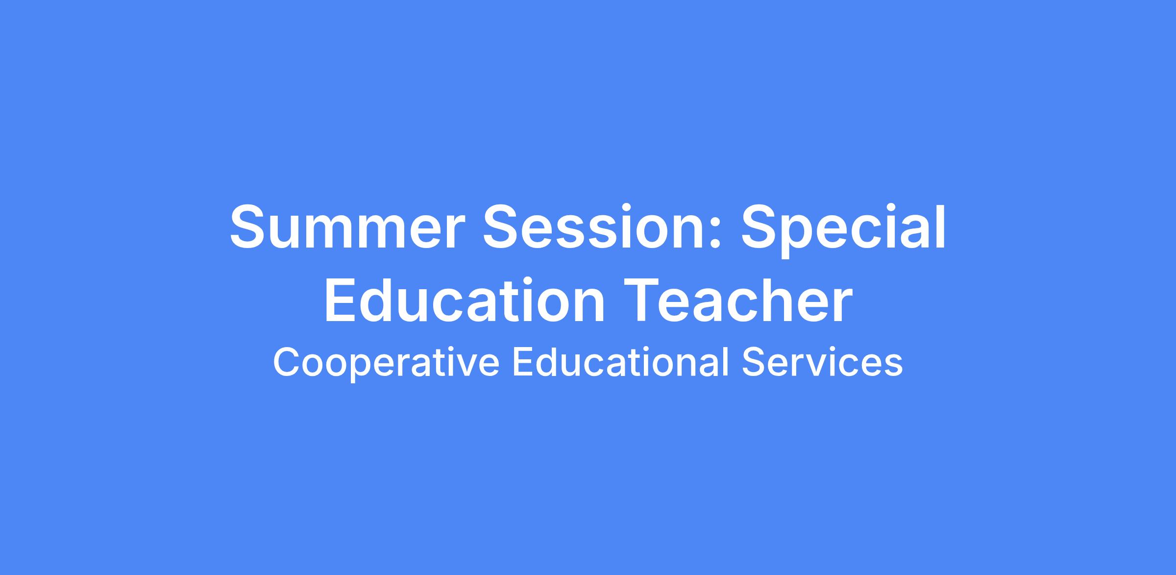 Position: Summer Session - Special Education Teachers