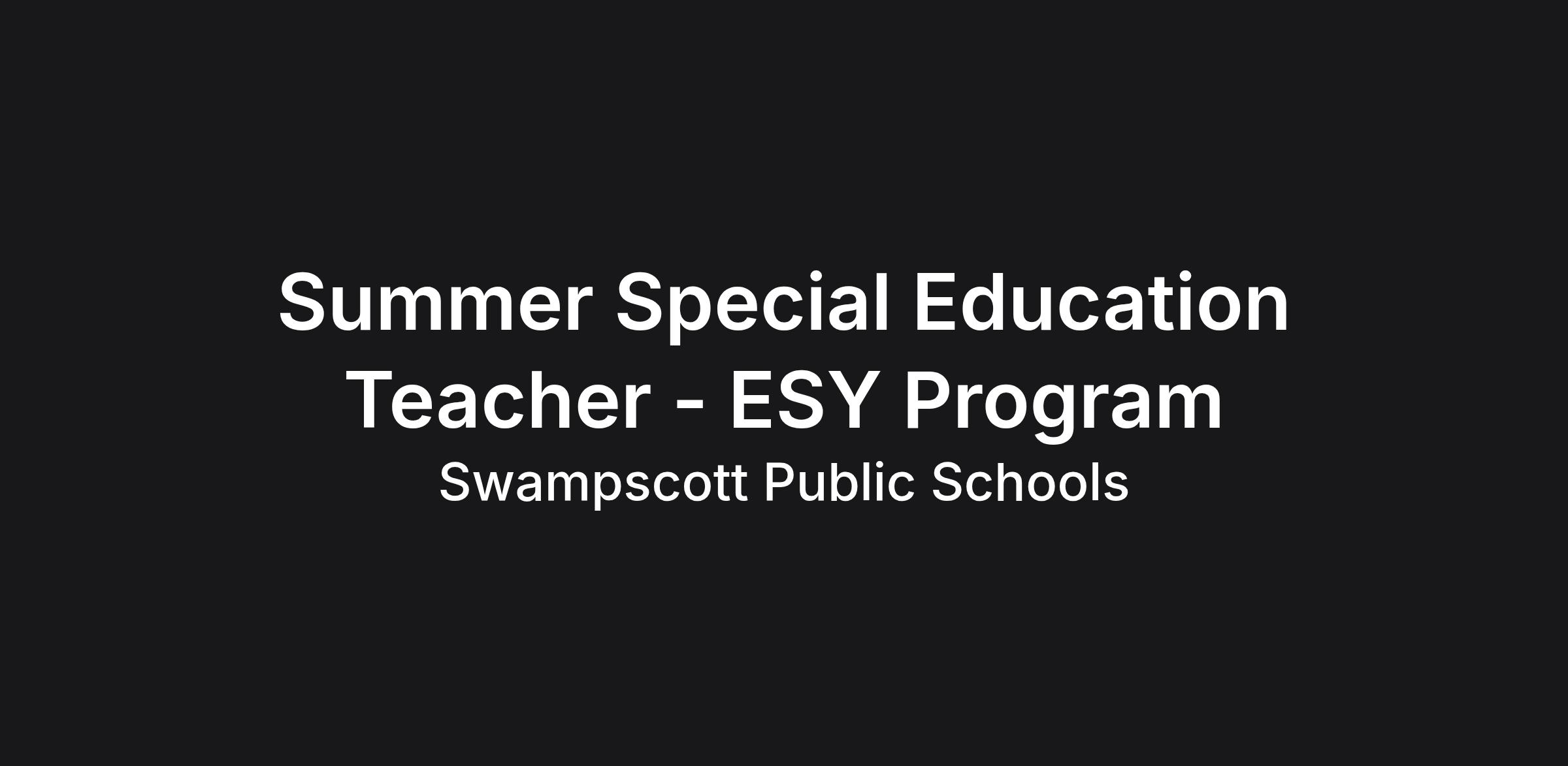 Position: Summer ESY Special Education Teacher