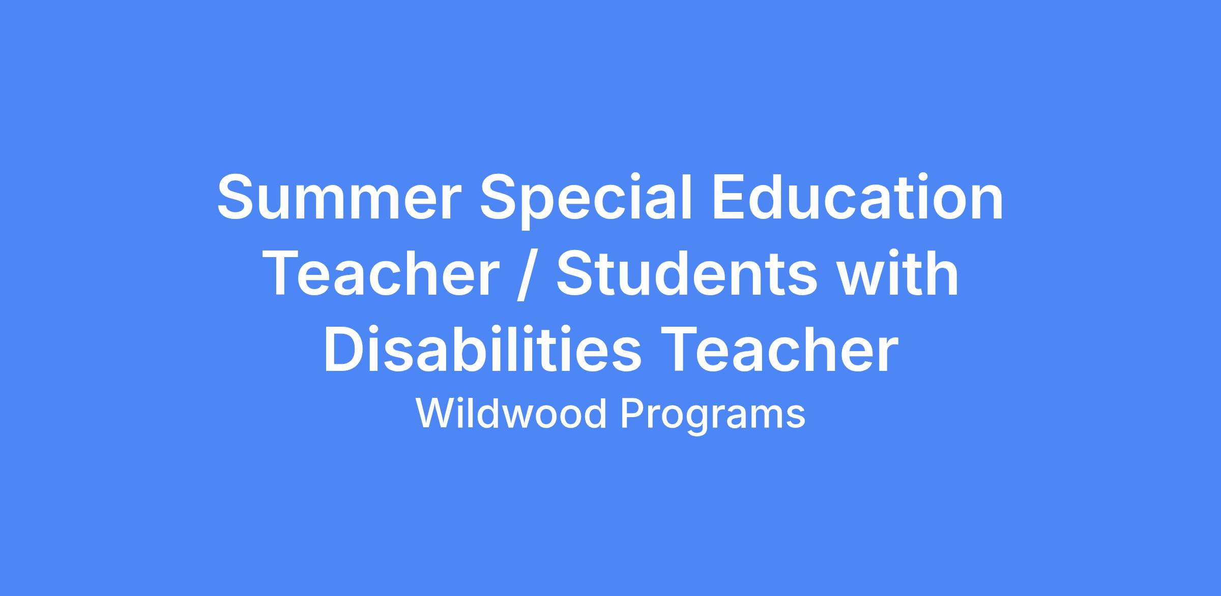 Summer Special Education /Students with Disabilities Teacher