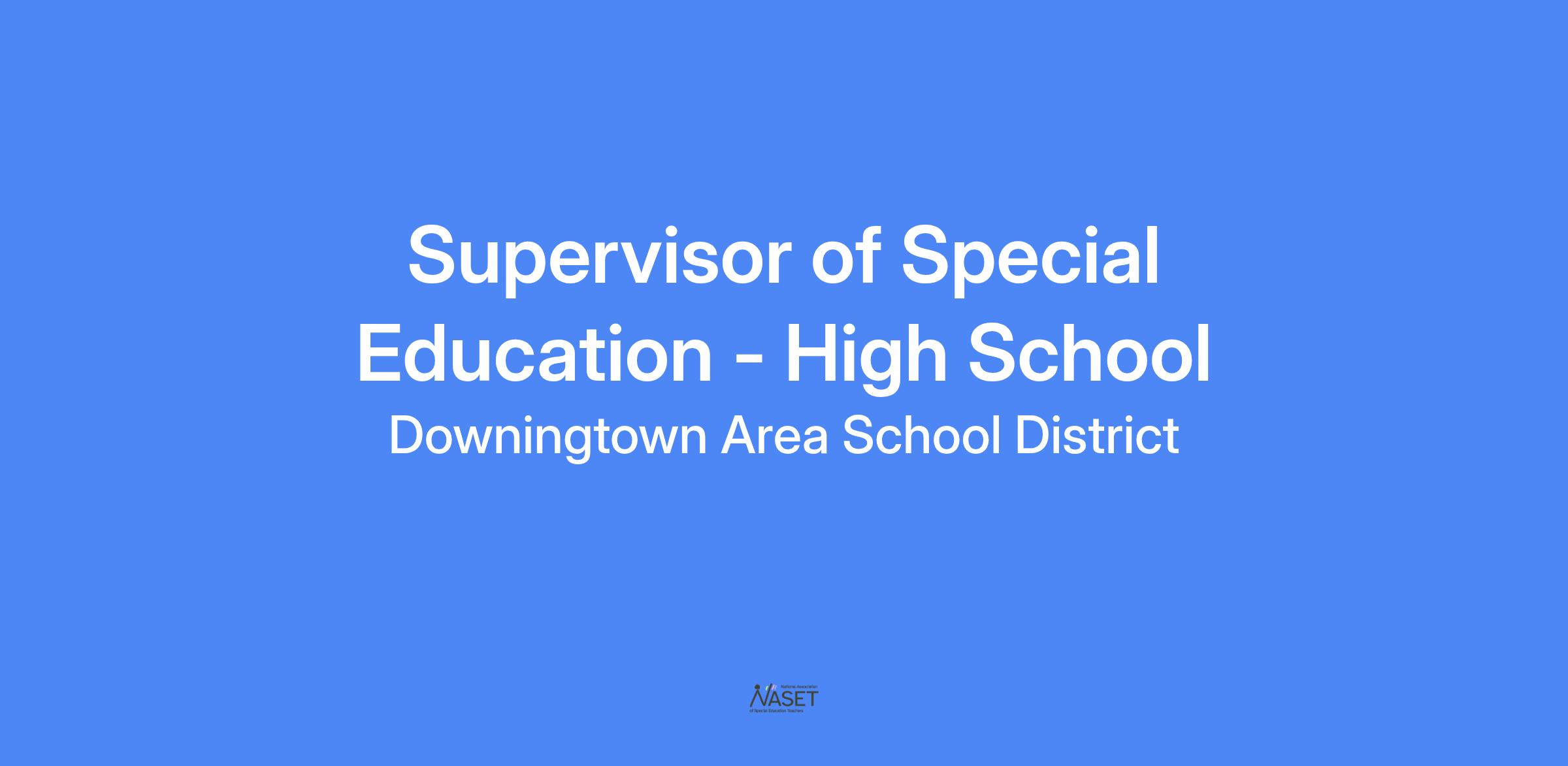 Are you passionate about helping ALL students learn in a collaborative environment? If so, we may have the career for you! Downingtown Area School District is excited to announce an opening for a Supervisor of Special Education - High School, located at the district administration building.
