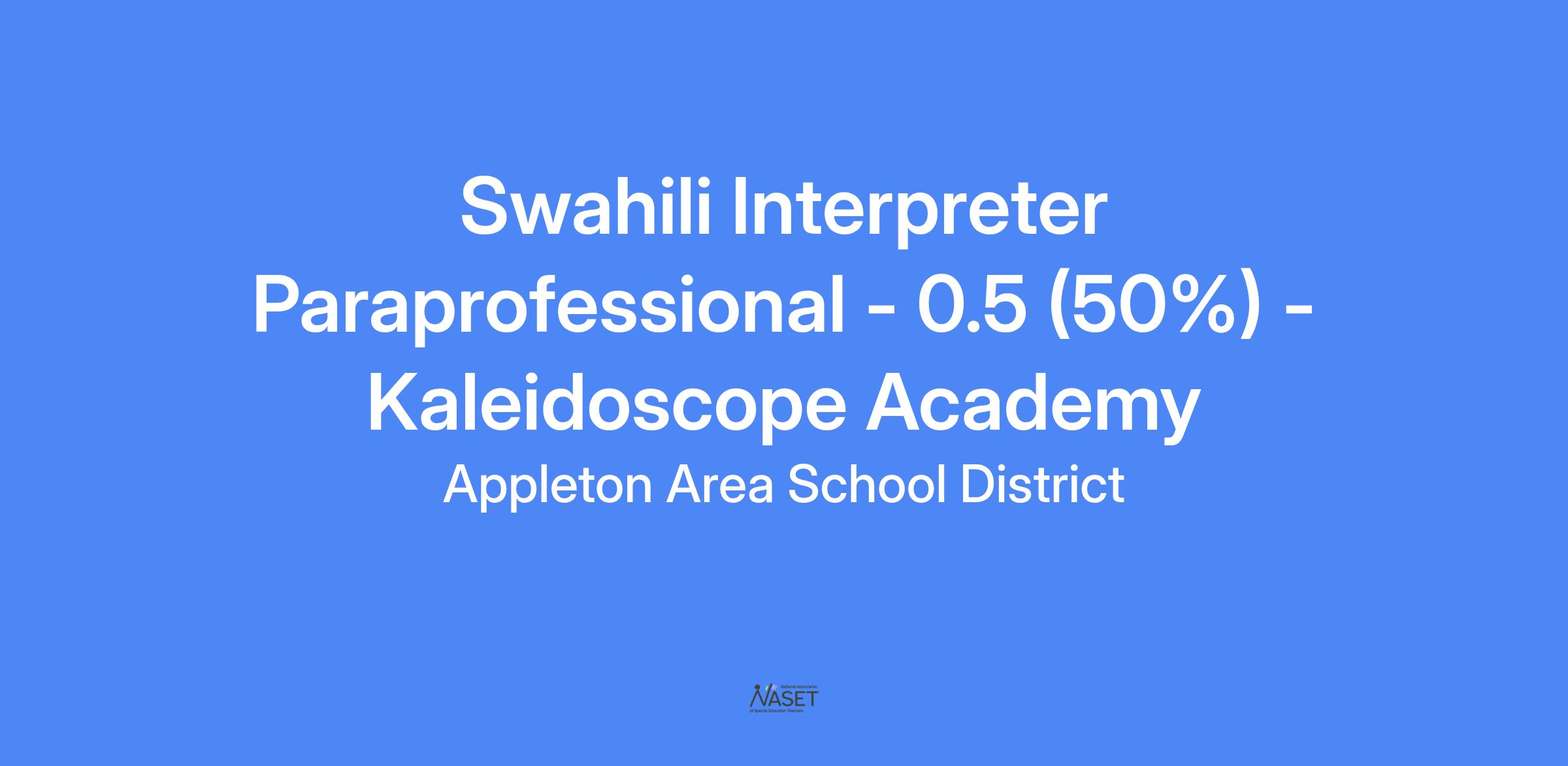 The Appleton Area School District has a position available for a 0.50 PTE (50%) Swahili Interpreter Paraprofessional at Kaleidoscope Academy beginning as soon as possible.