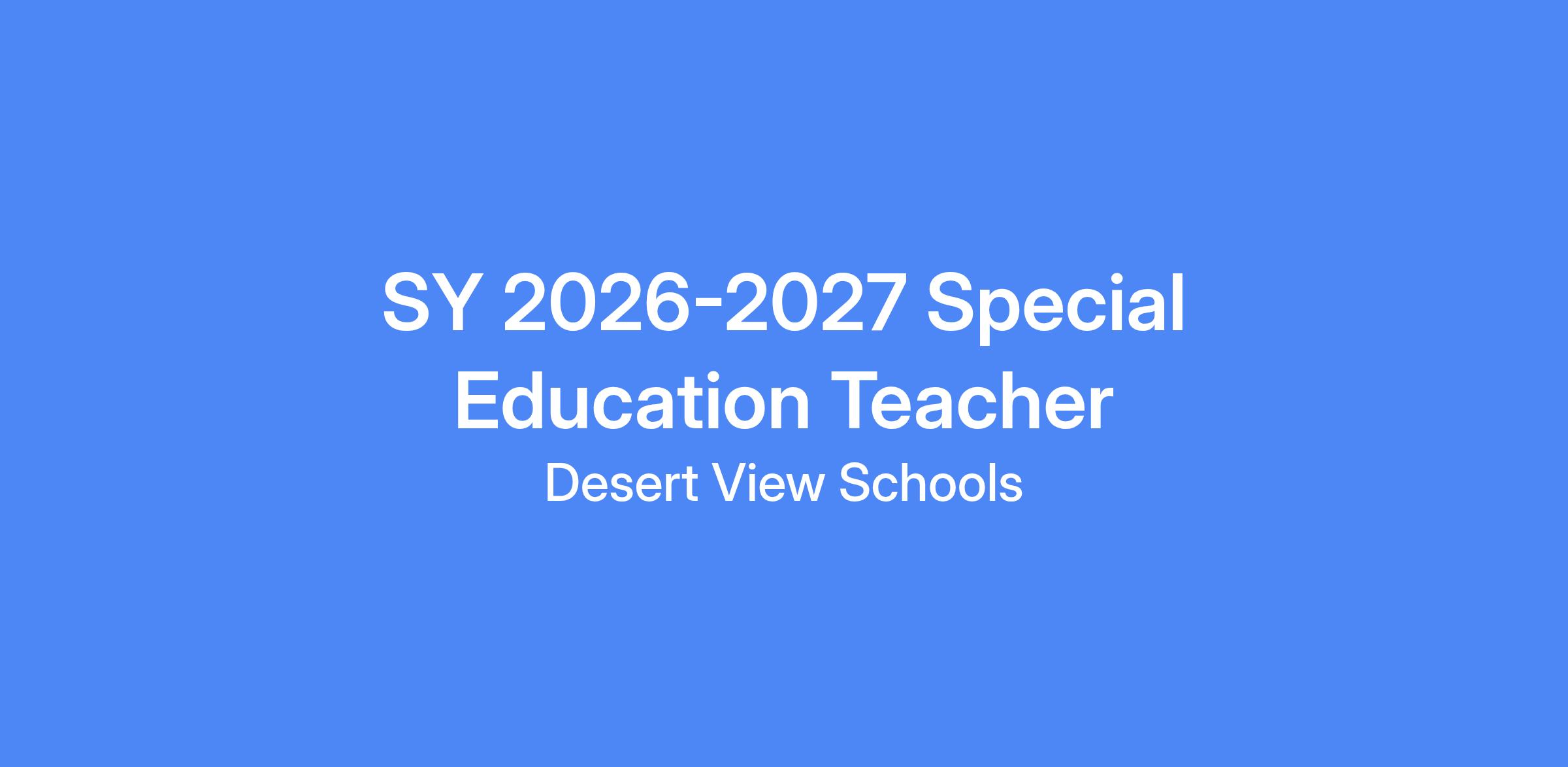 We are looking for a Special Education (SPED) Teacher to join our team of dedicated educators at Desert View Middle School.