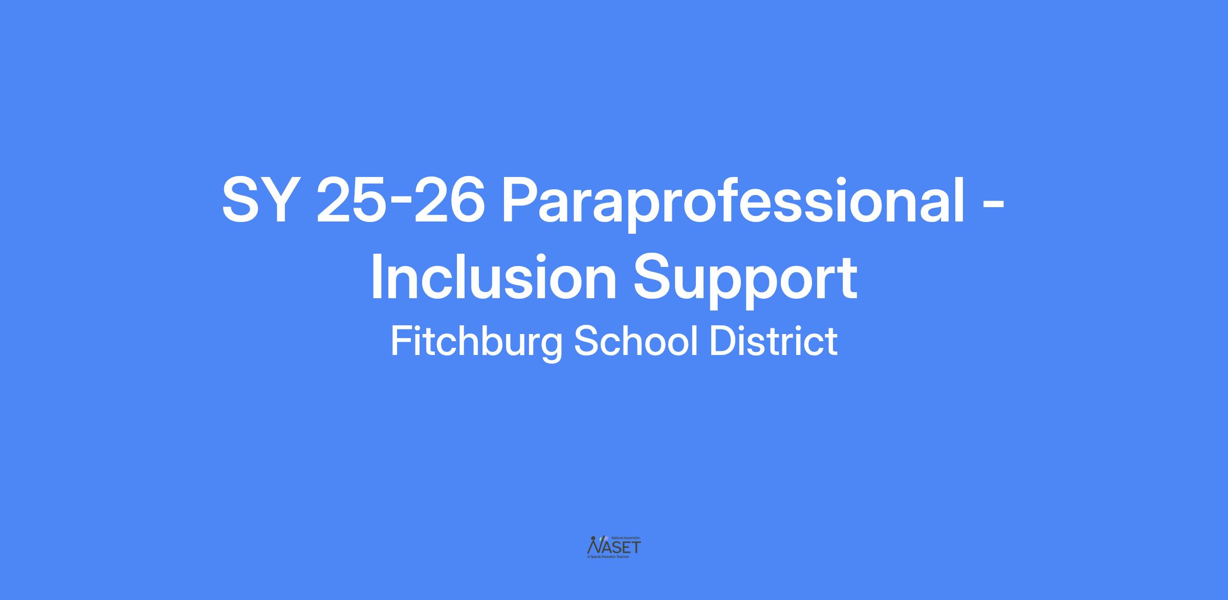 Paraprofessionals will assist teachers in providing an innovative, high-quality education program designed to meet the needs of the children in the Fitchburg Public Schools. Inclusion support paraprofessionals are typically assigned to general education classrooms.
