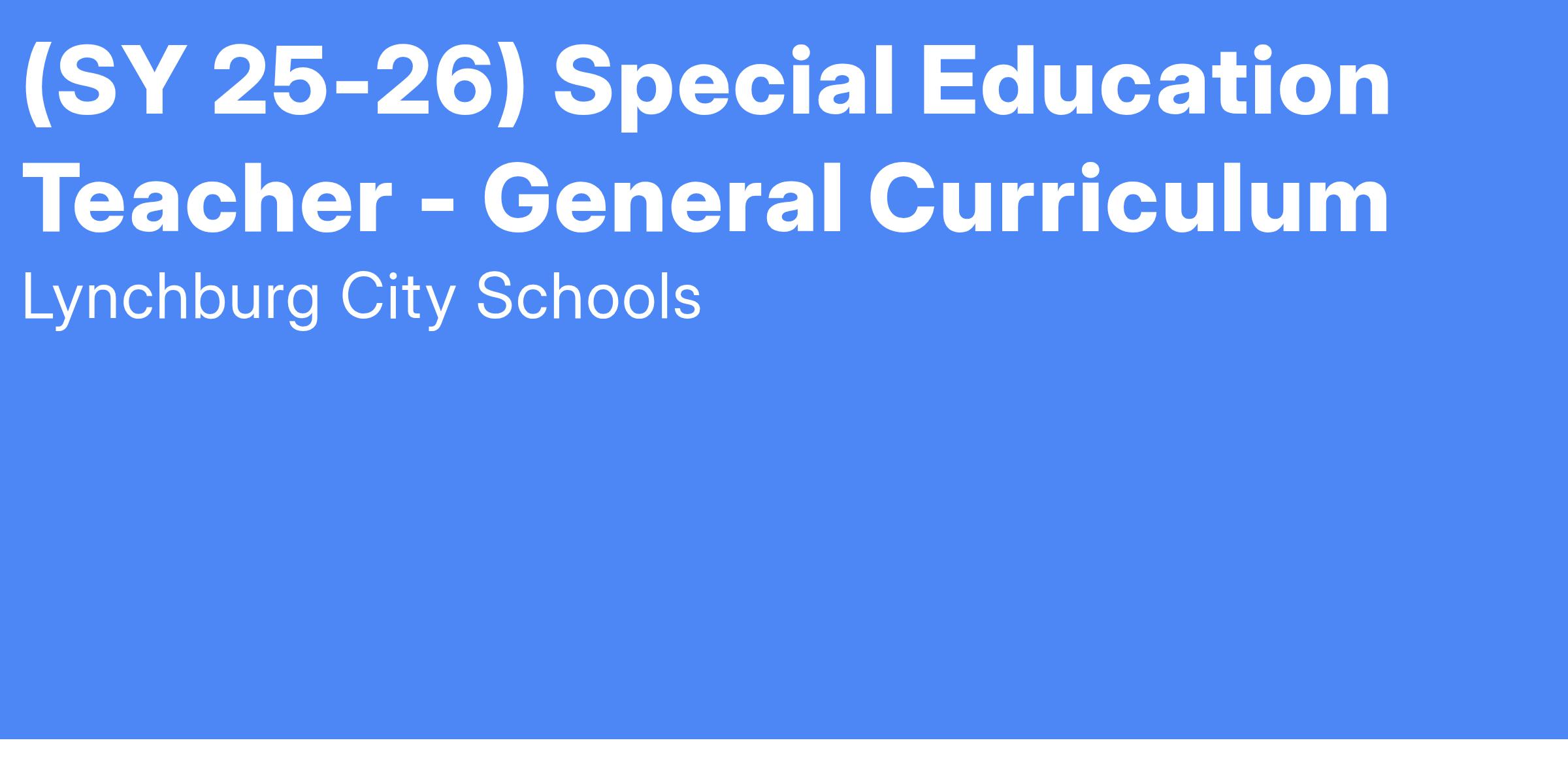 | (SY 25-26) Special Education Teacher - General Curriculum |
