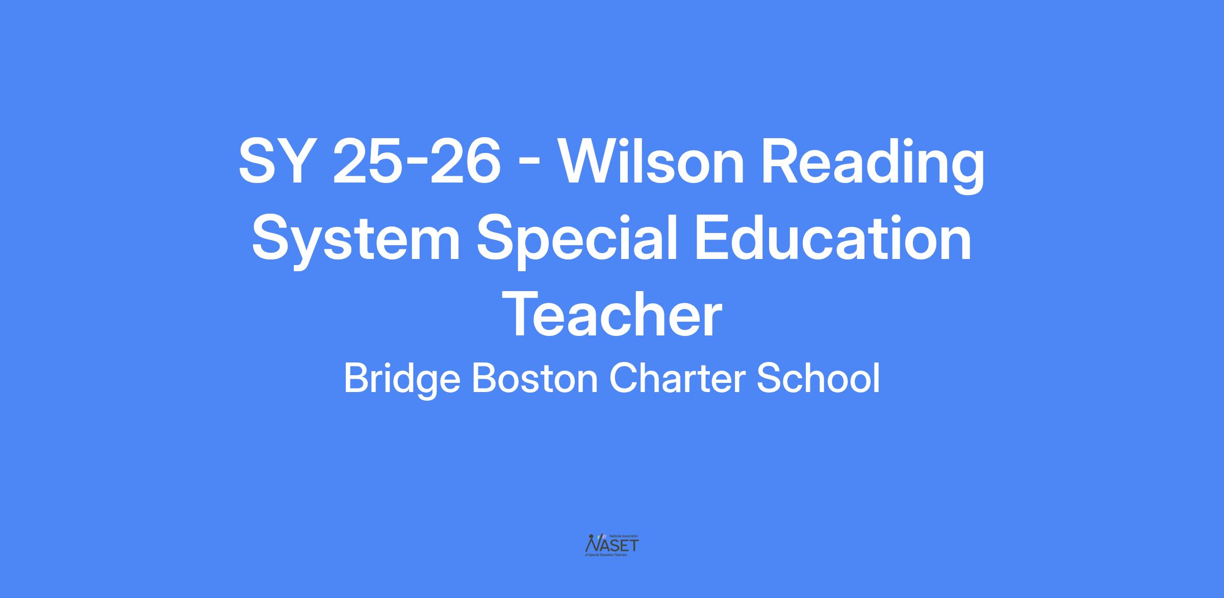SY 25-26 - Wilson Reading System Special Education Teacher [Leave Replacement Aug - Nov]