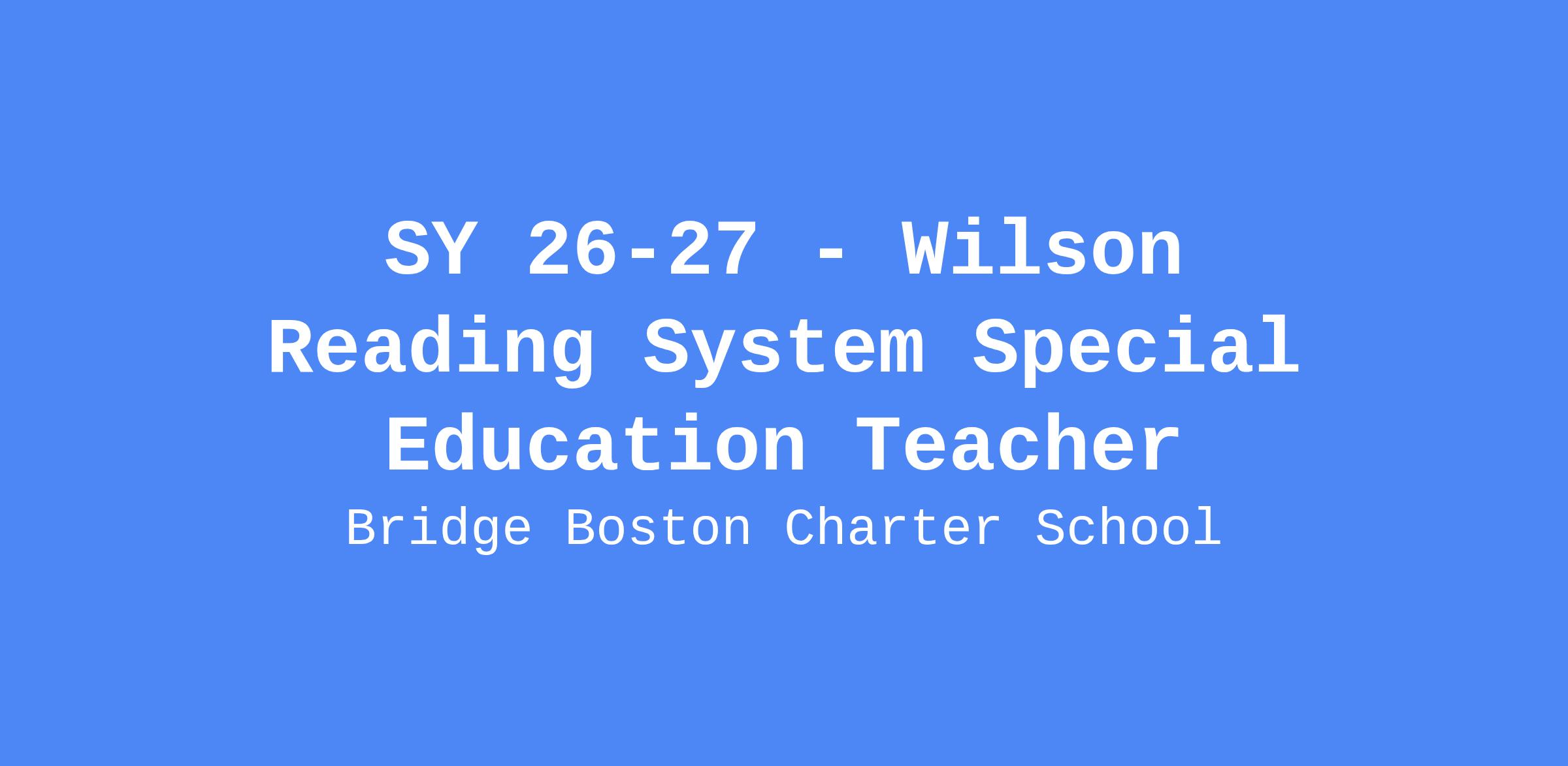SY26-27 Wilson Reading System Special Education Teacher