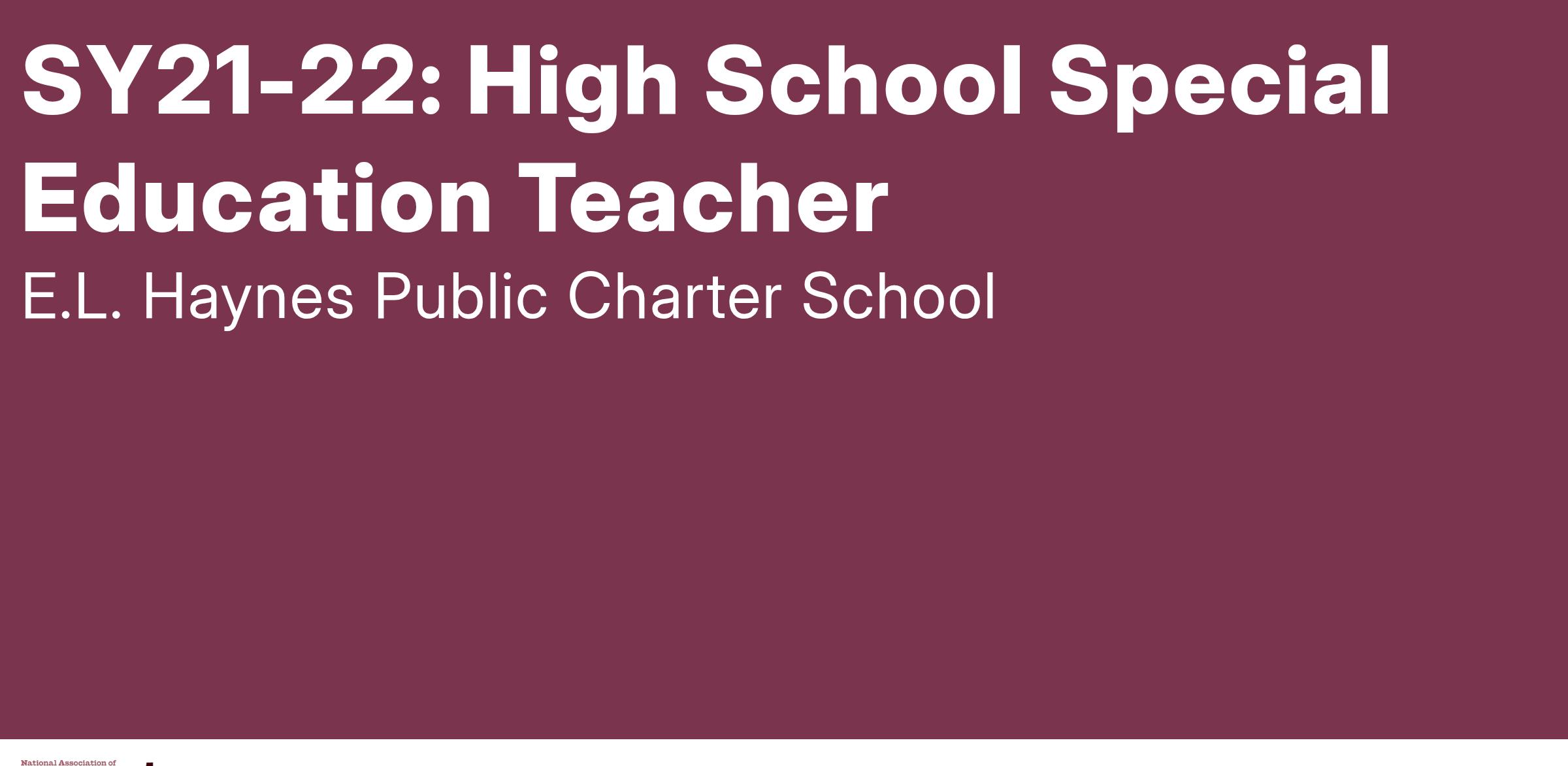 A kind, communicative, social justice leader that seeks a high school teaching position, with a strong belief that you will prepare students to thrive in college, career, and life. You want to teach students in order to create a more just and equitable world. You have a growth mindset, want to develop the perspective, agency, and urgency to make a positive impact in the world around you, and take actions that promote justice and equity in your community.