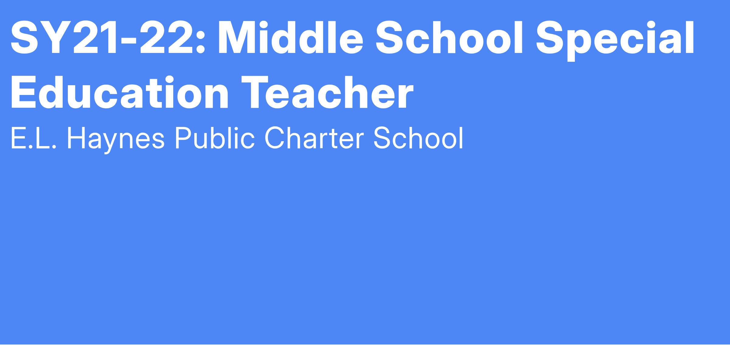 A kind, communicative, social justice leader that seeks a middle school teaching position, with a strong belief that you will prepare students to thrive in college, career and life. You want to teach students in order to create a more just and equitable world. You have a growth mindset, want to develop the perspective, agency, and urgency to make a positive impact in the world around you, and take actions that promote justice and equity in your community.