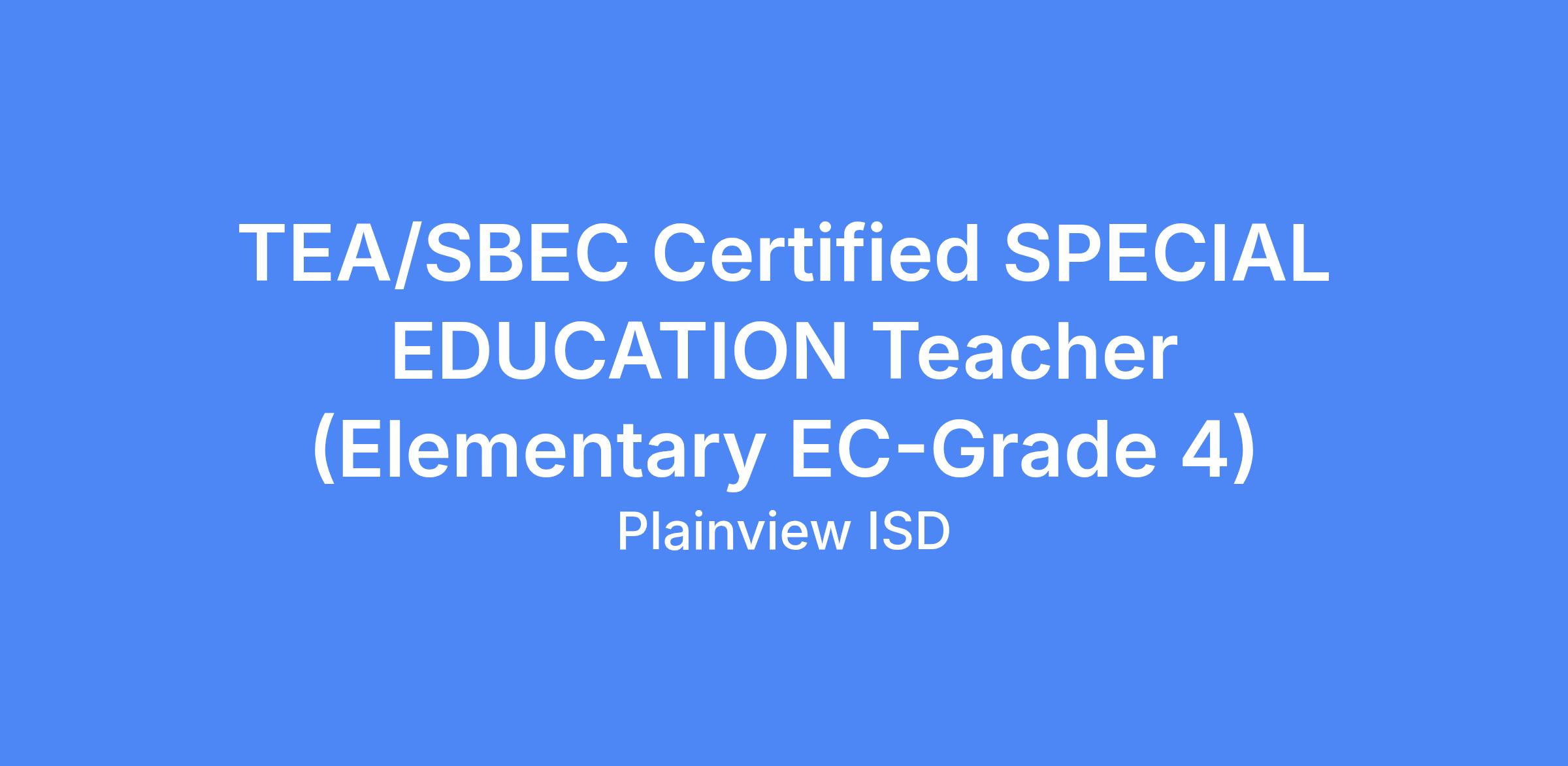 TEA/SBEC Certified SPECIAL EDUCATION Teacher (Elementary EC-Grade 4)