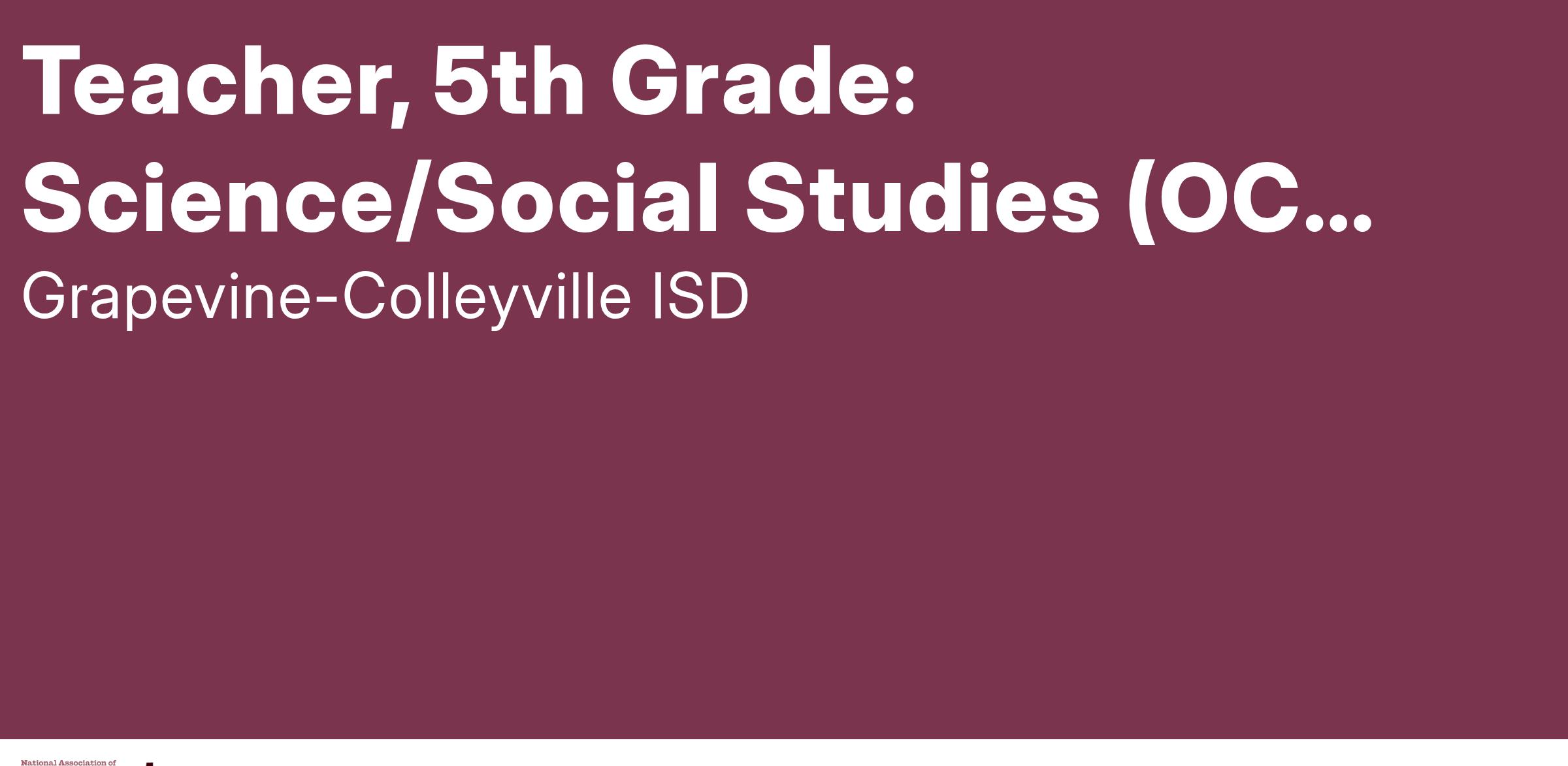 Job Title: Teacher, 5th Grade (Science/Social Studies) Wage/Hour Status: Exempt