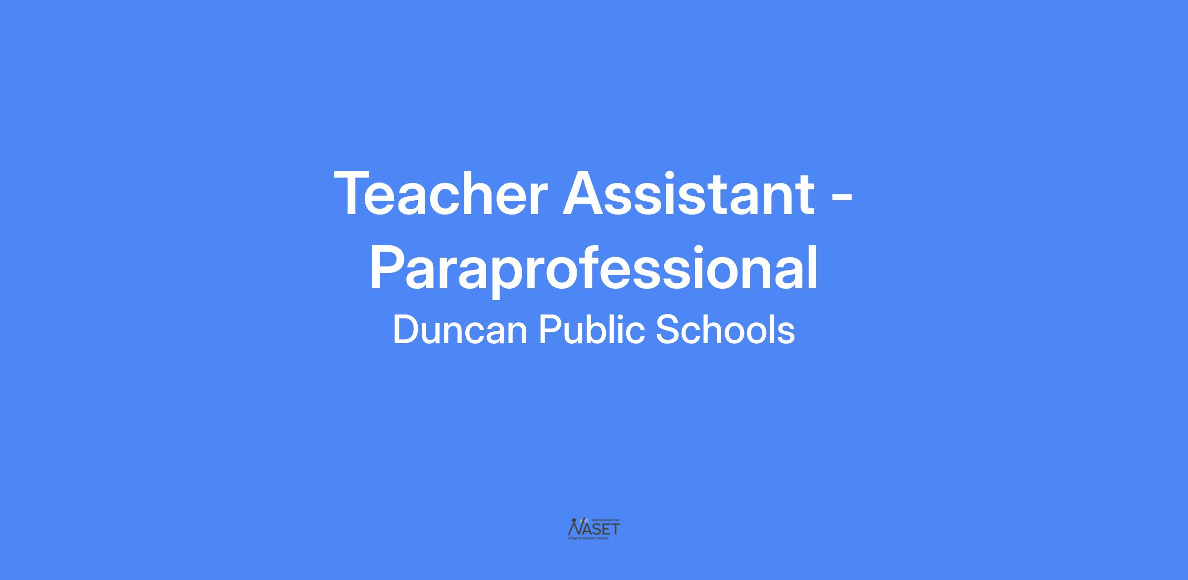JOB TITLE: Teacher Assistant - Instructional Paraprofessional