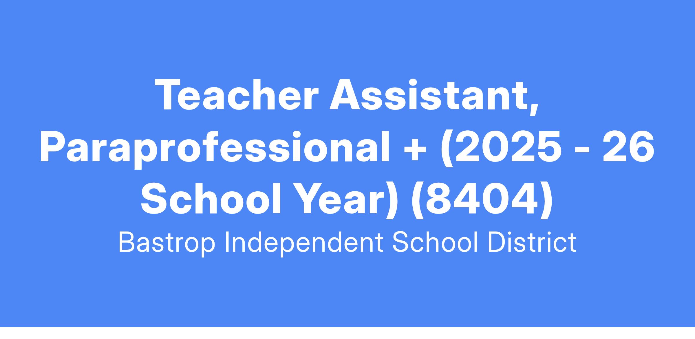 Teacher Assistant, Paraprofessional + (2025 - 26 School Year) (8404)