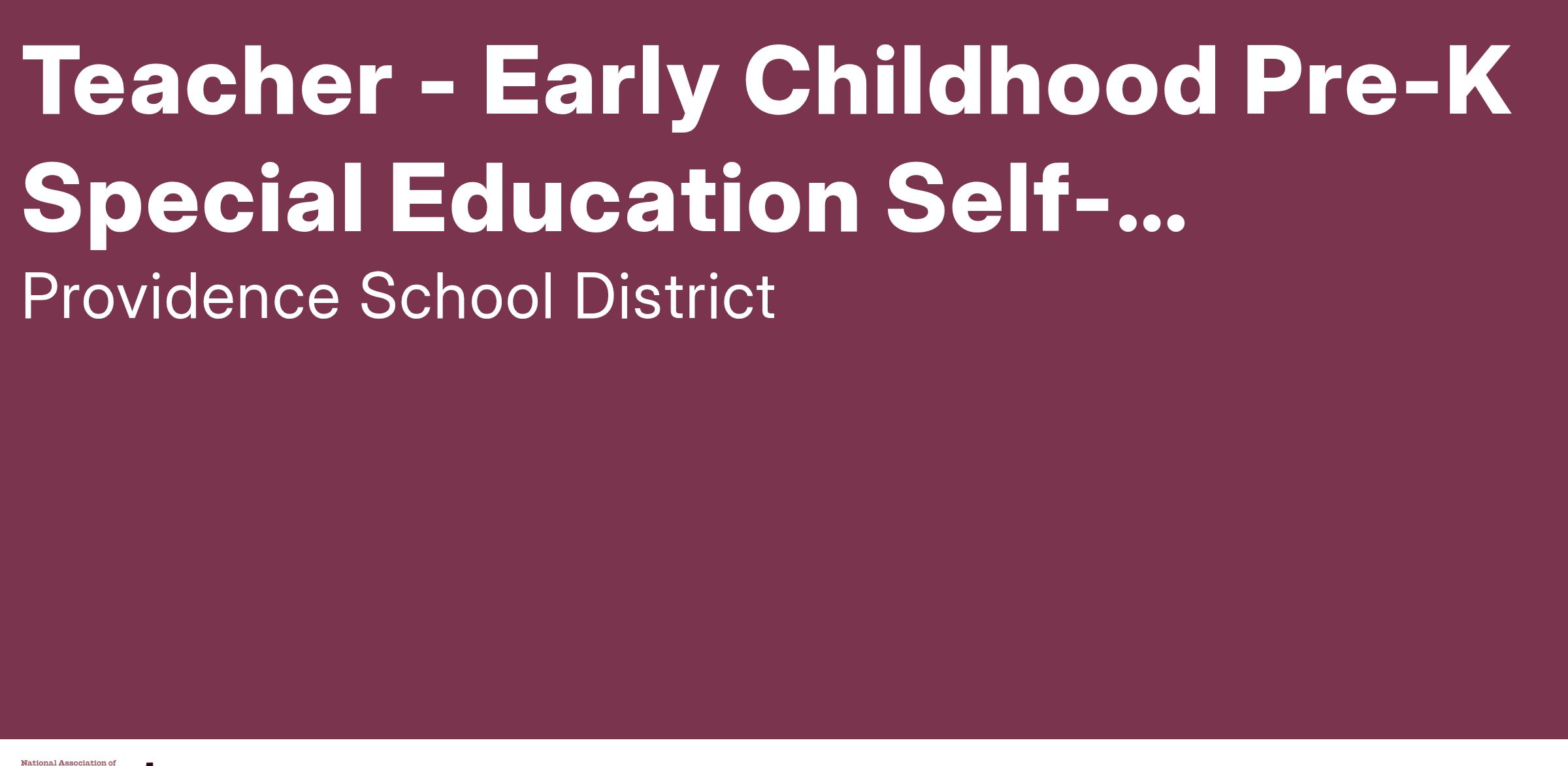 Providence Public Schools District (PPSD) seeks an exceptional EARLY CHILDHOOD PRE-K SPECIAL EDUCATION (SPED) SELF-CONTAINED ALTERNATE (SCA) TEACHER who is highly qualified and skillful to join our community of teachers, students and stakeholders. This is an exciting opportunity for teachers who seek a challenging yet rewarding teaching experience.