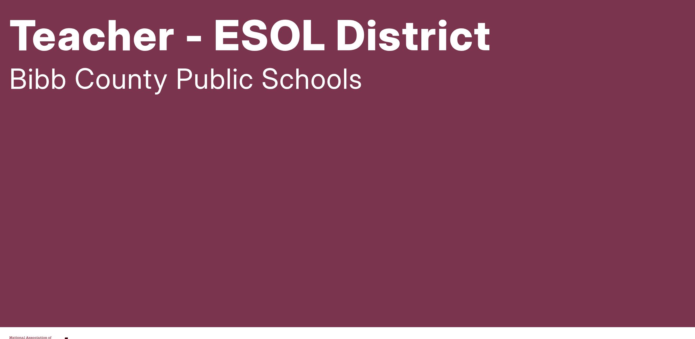 Under the direction of the Department of Teaching and Learning and ESOL Coordinator, the ESOL Teacher will plan instruction and provide appropriate learning experiences for ELL students through state approved delivery models. The teacher provides instruction for students that enables them to learn and achieve to the maximum of their abilities and will serve multiple schools within the District.