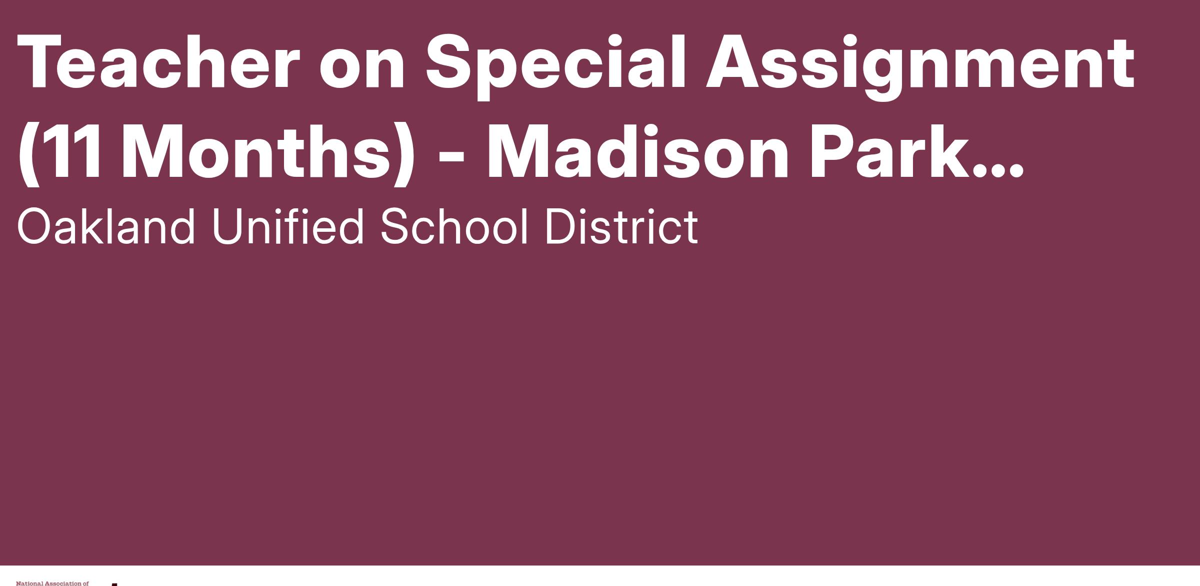 Teacher on Special Assignment (11 Months) - Madison Park Lower Academy (2025-26)