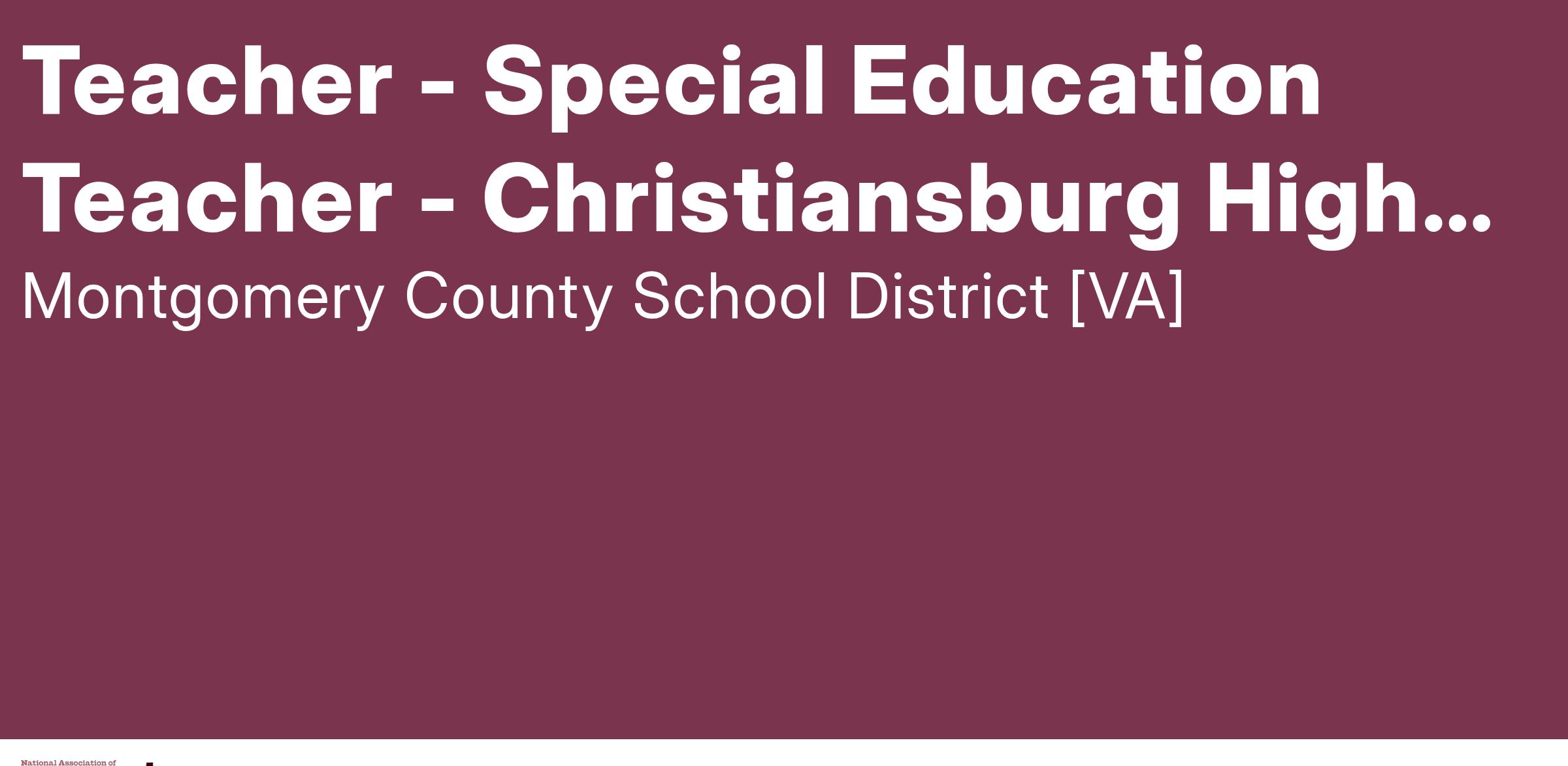 The Montgomery County School Board in Virginia is now accepting applications for a special education teaching position that is available at Christiansburg High School.