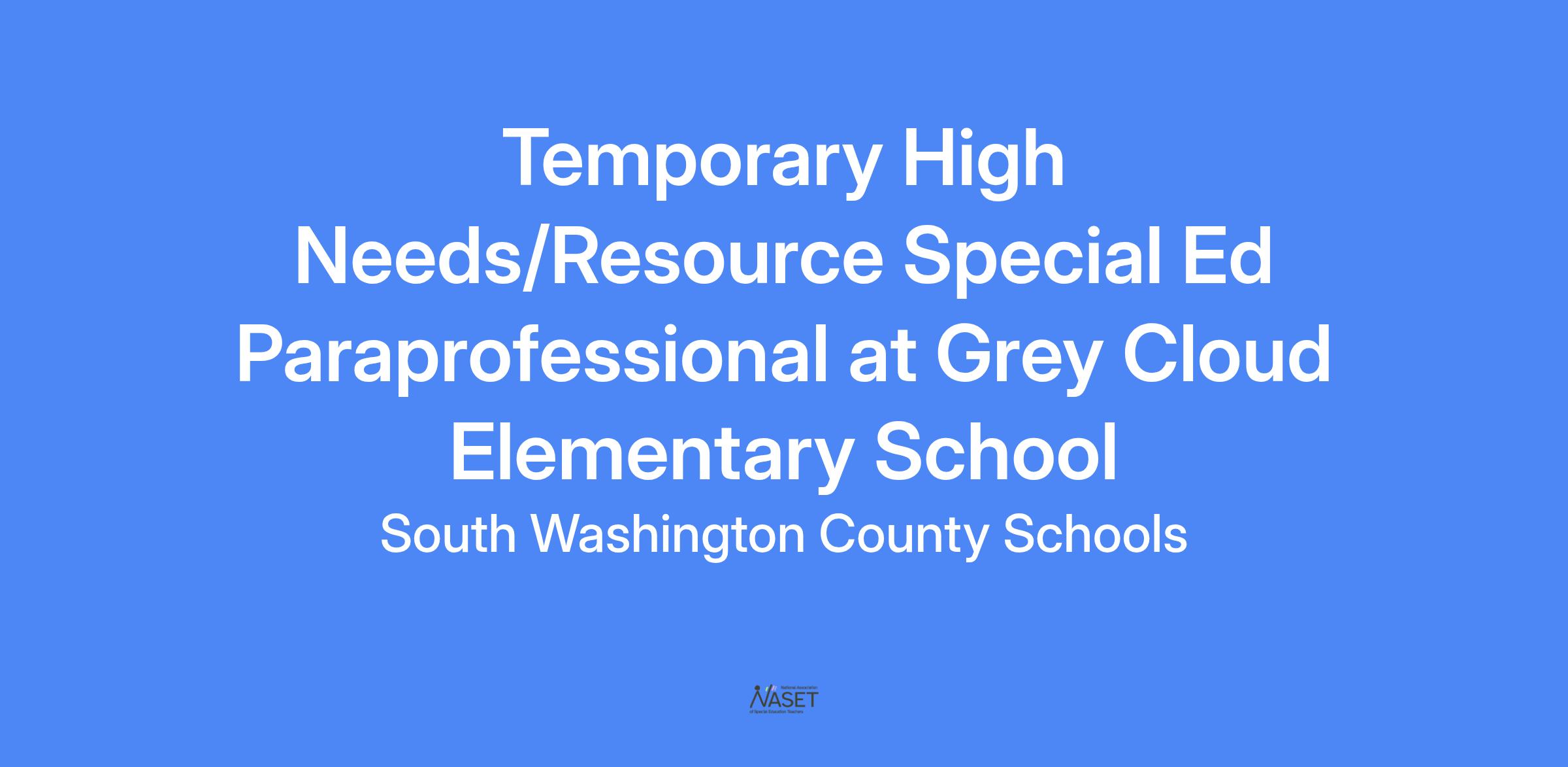 | Position | Temporary High Needs/Resource Special Ed Paraprofessional - Long Term Substitute |