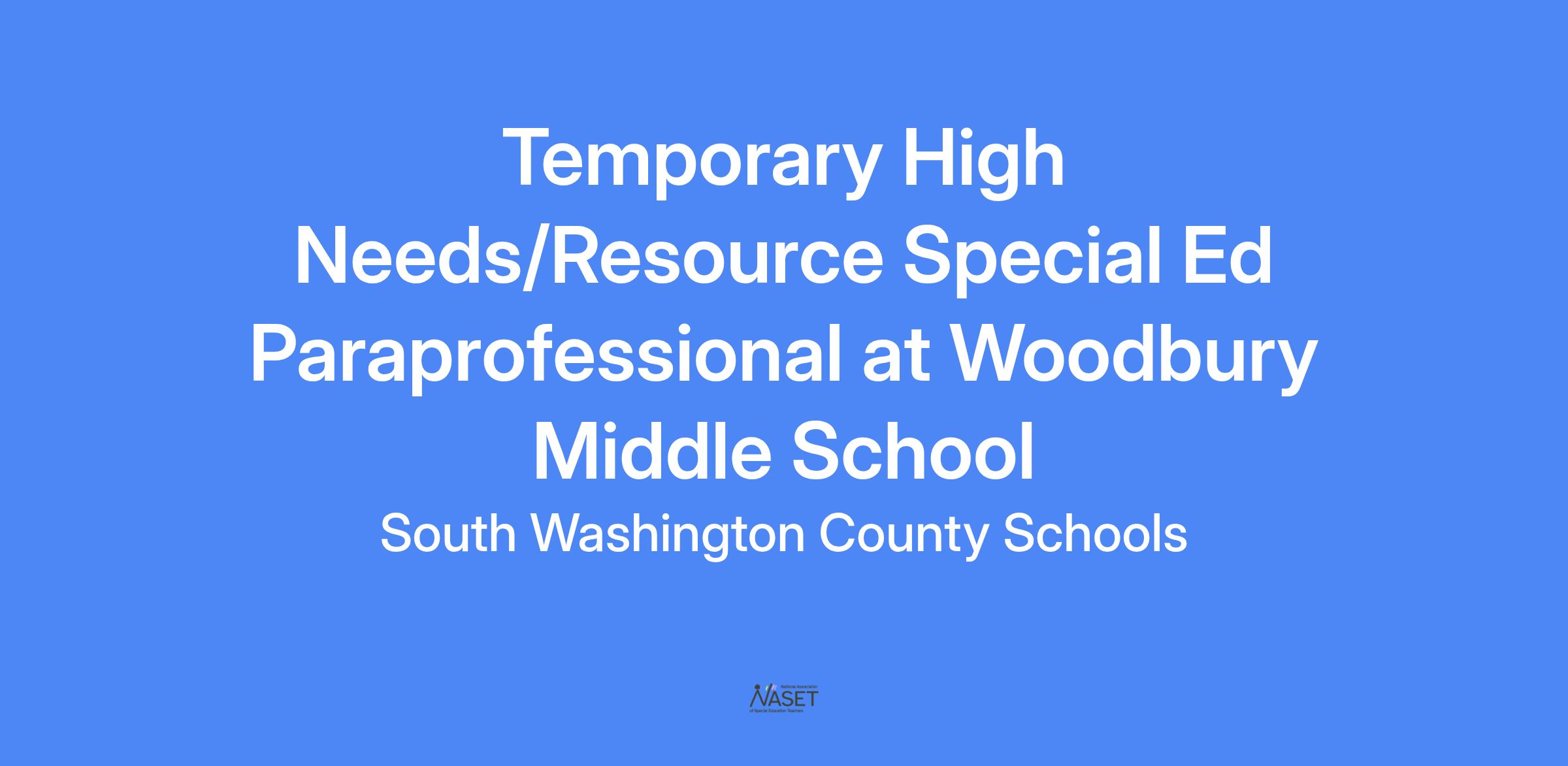 | Position | High Needs/Resource Special Ed Paraprofessional - Long Term Substitute |