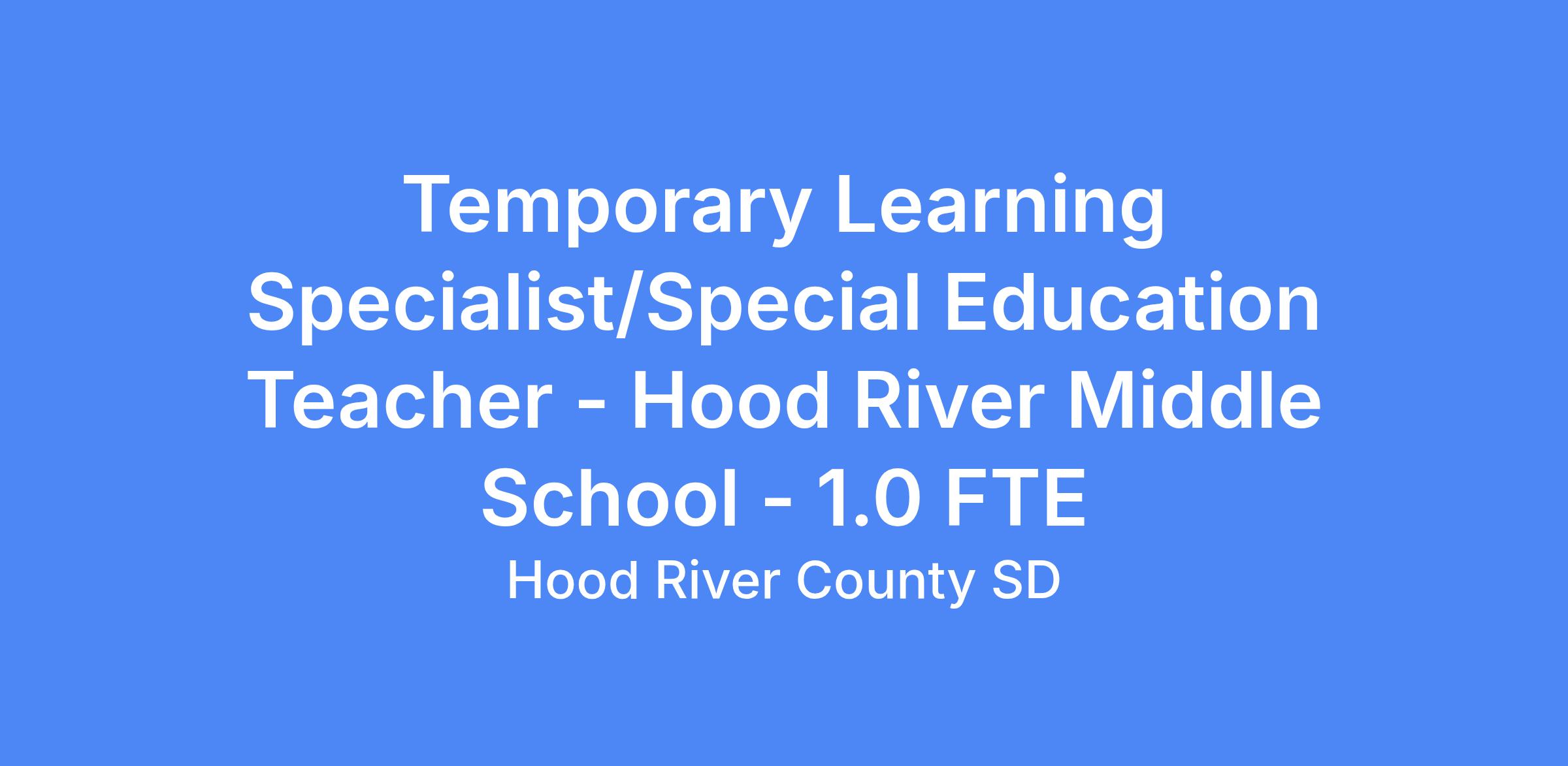 HOOD RIVER COUNTY SCHOOL DISTRICT IS AN EQUAL OPPORTUNITY EMPLOYER. Reasonable accommodations for the application and interview process will be provided upon request and as required in accordance with the Americans with Disabilities Act of 1990. Disabled persons may contact Hood River County School District at 541/387-5016 for additional information or assistance. Speech or hearing-impaired persons may contact Hood River County School District for assistance through the Oregon Telecommunications Relay Service by dialing 1-800-735-2900.