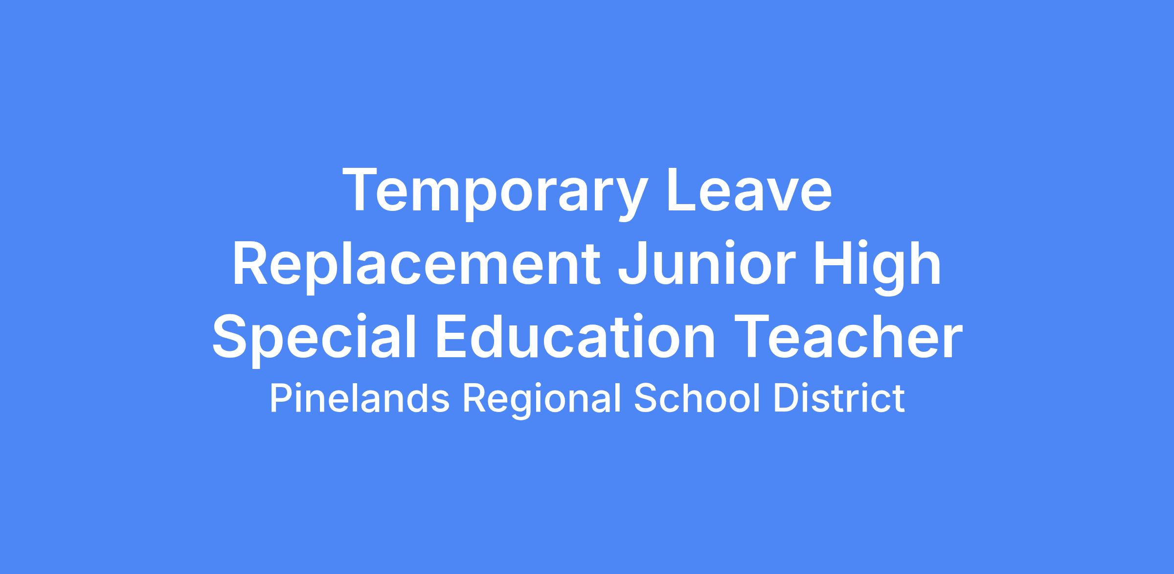 Pinelands Regional School District is seeking a Special Education Teacher.