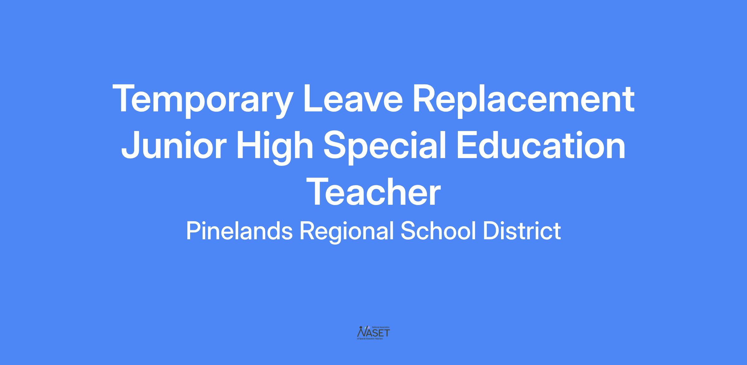 Pinelands Regional School District is seeking a Special Education Teacher.