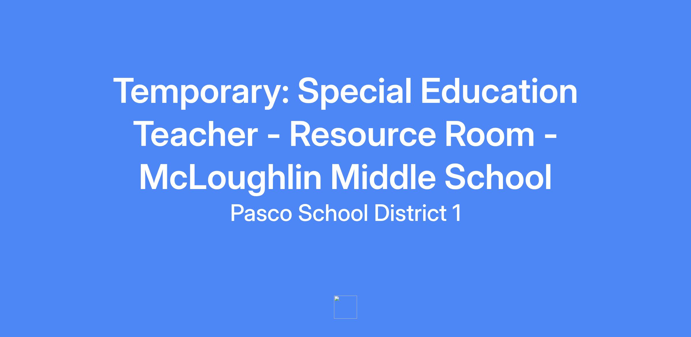 POSITION: Temporary - Special Education Teacher– Resource Room