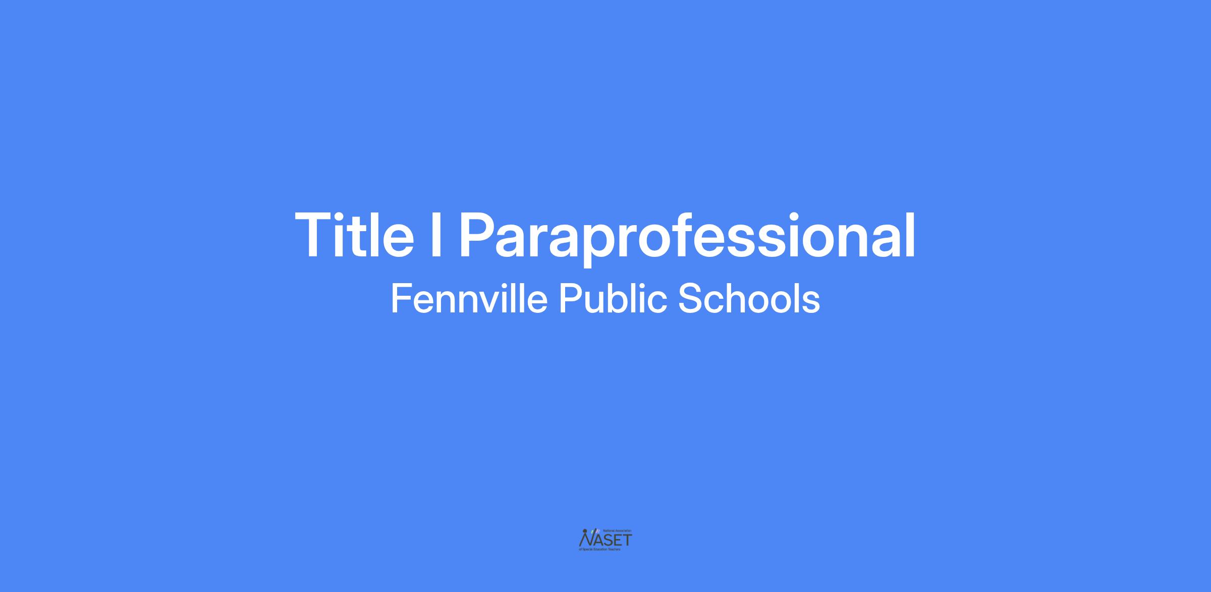 We are seeking a dedicated and compassionate individual to join our team at Fennville Elementary as a Title I Paraprofessional. This full-time position involves supporting students who require additional assistance in their academic pursuits. The successful candidate will work closely with teachers and staff to create a positive learning environment that fosters growth and development for all students.