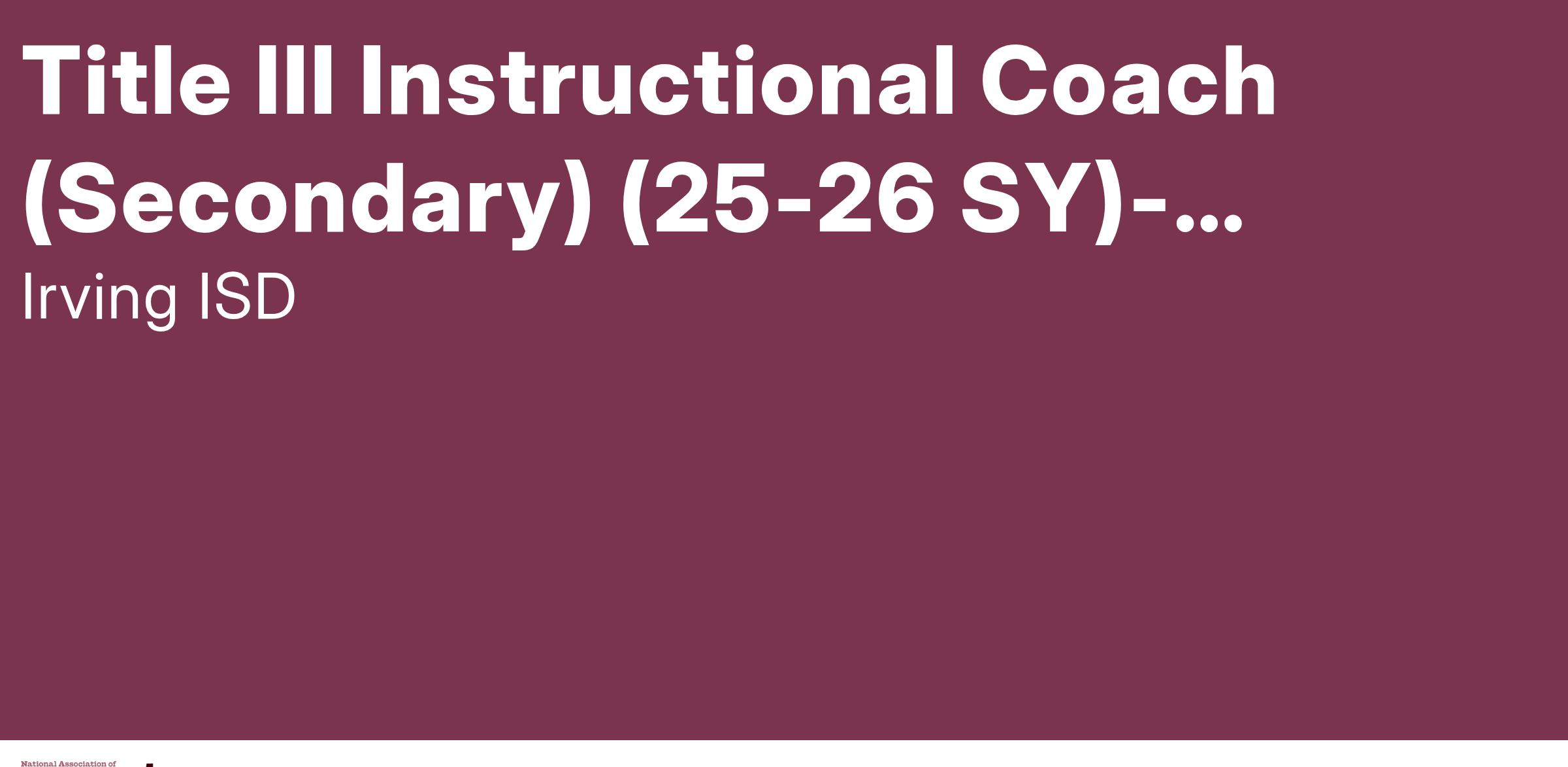Disclaimer: This is a grant-funded position. Funds for this position are expected to be available up to the end of the school year. In addition to other specified conditions of employment, the applicant understands that no guarantee of continued employment, beyond the availability of the grant funds, is expressed or implied by Irving Independent School District.