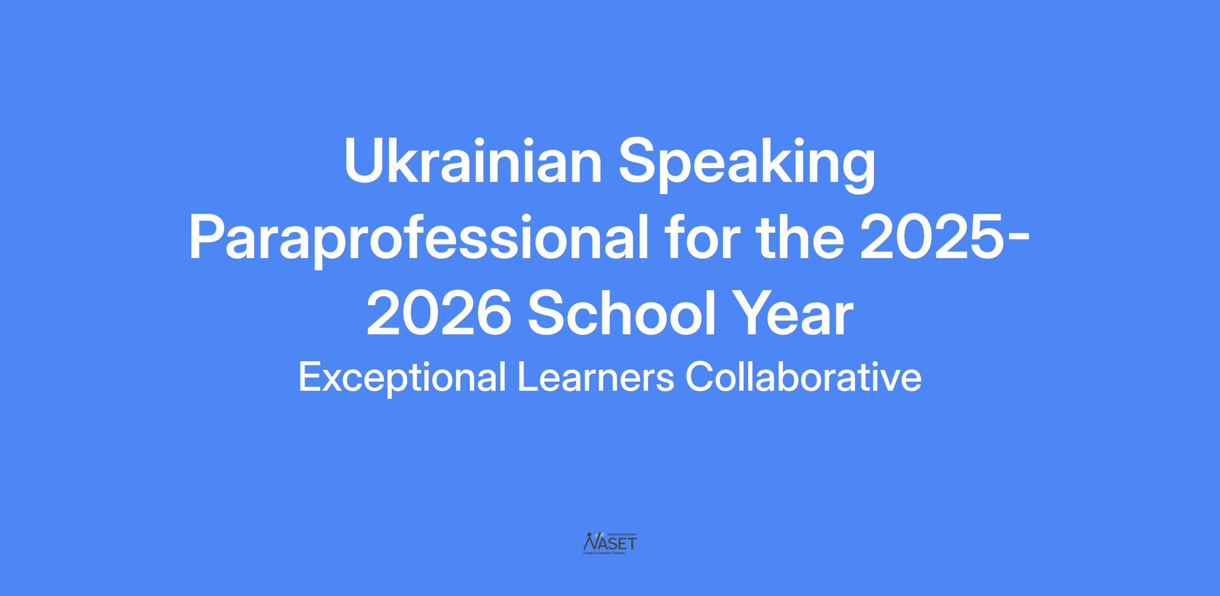 Ukrainian Speaking Special Education Paraprofessional (2025-2026 School Year)