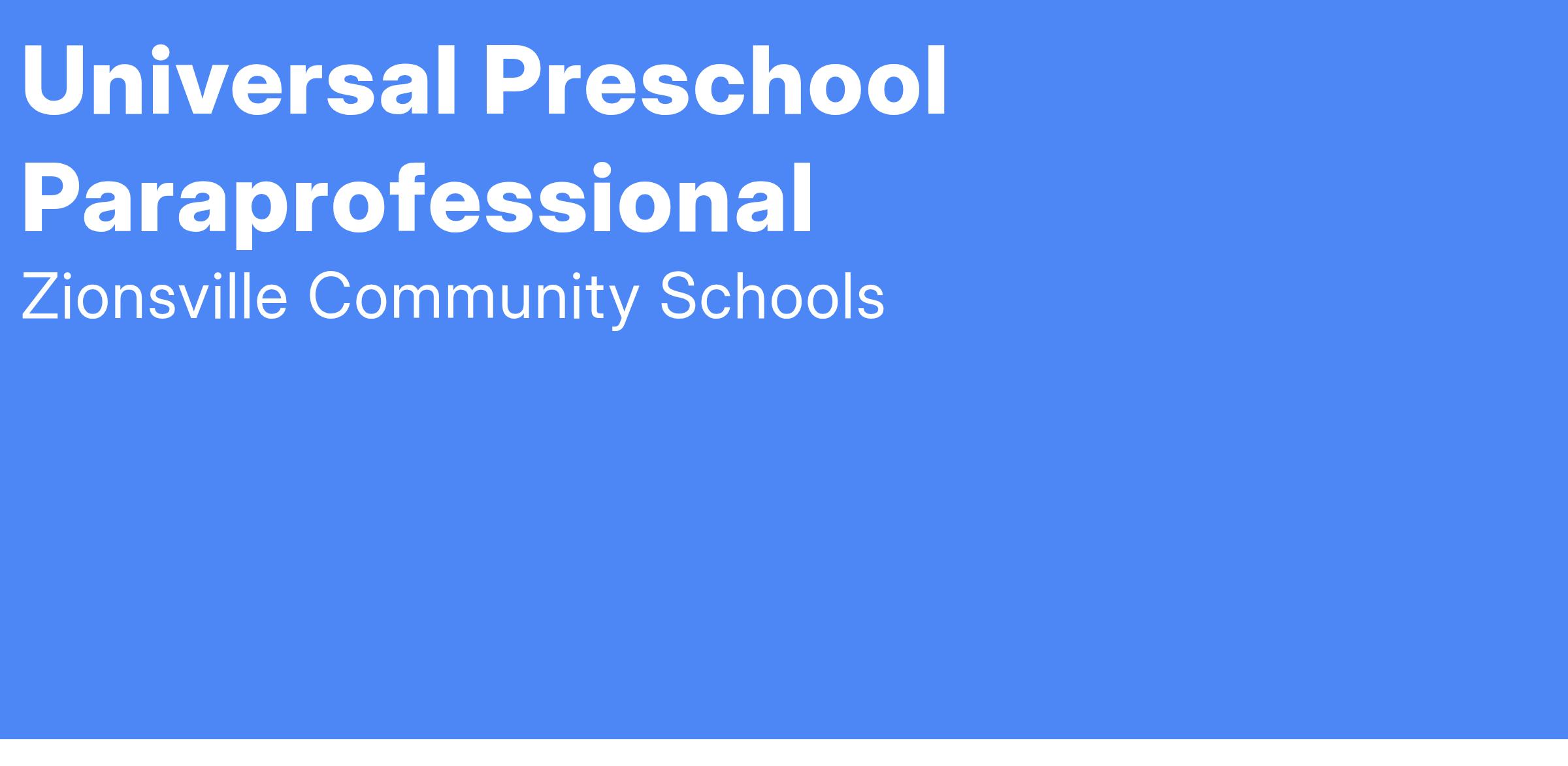 Zionsville Schools is seeking a Paraprofessional for the Universal Preschool beginning with the 25-26 school year. This position is full time and benefit eligible.