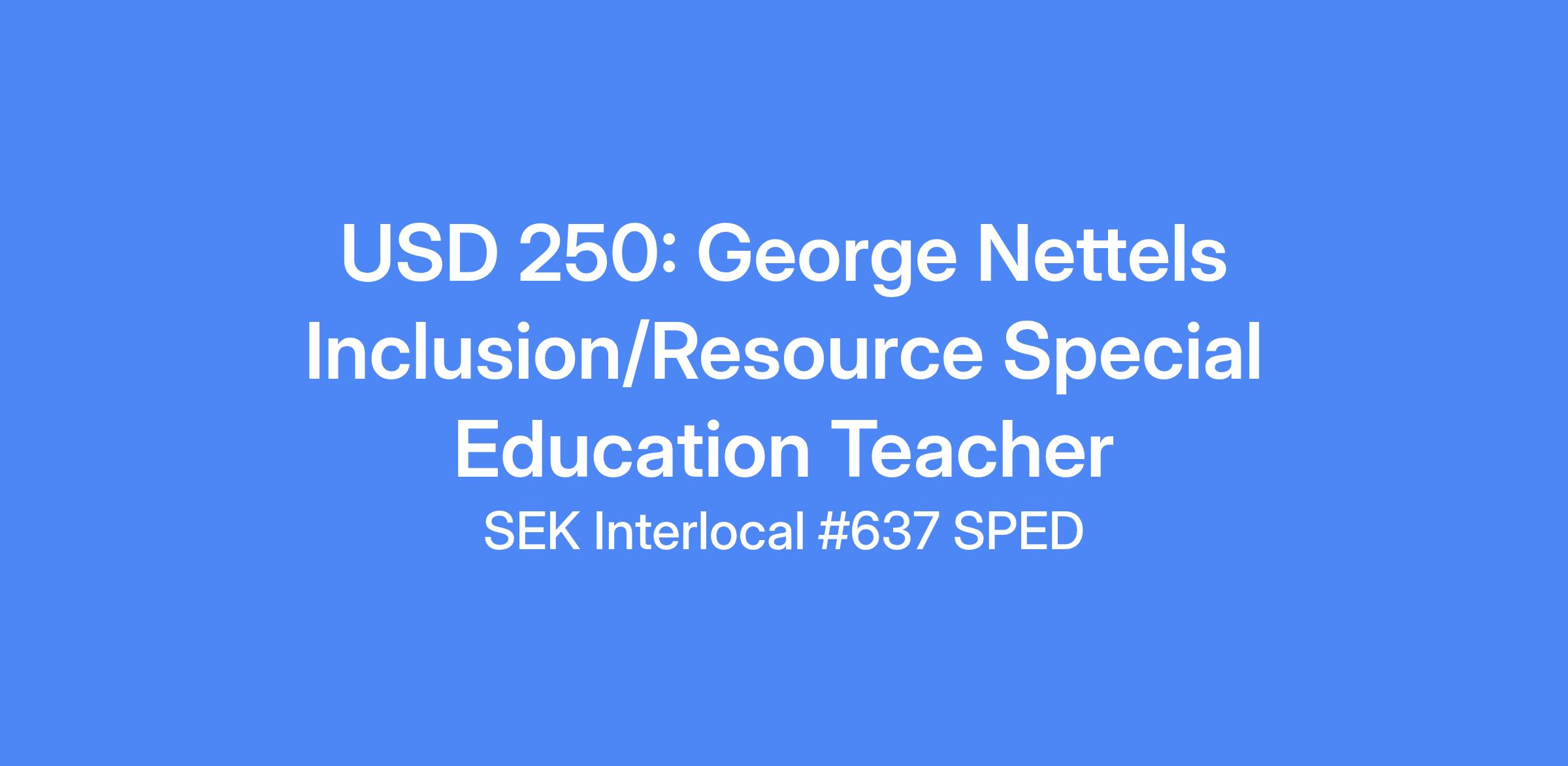 USD 250: George Nettels Inclusion/Resource Special Education Teacher